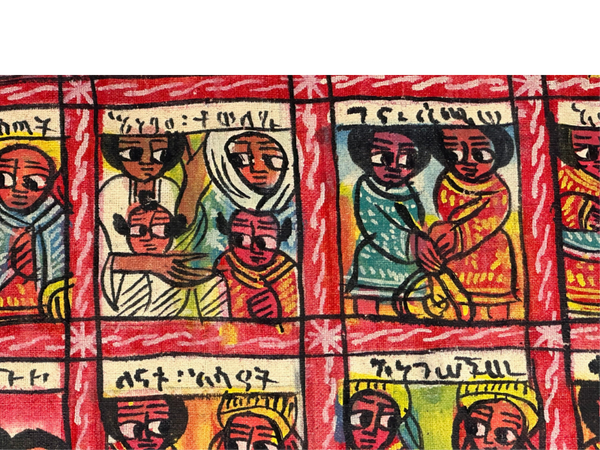Untitled (King Solomon and the Queen of Sheba)Painted on cotton in the traditional Ethiopian colors. The dimensions of this painting are 74 cm x 39 cm.