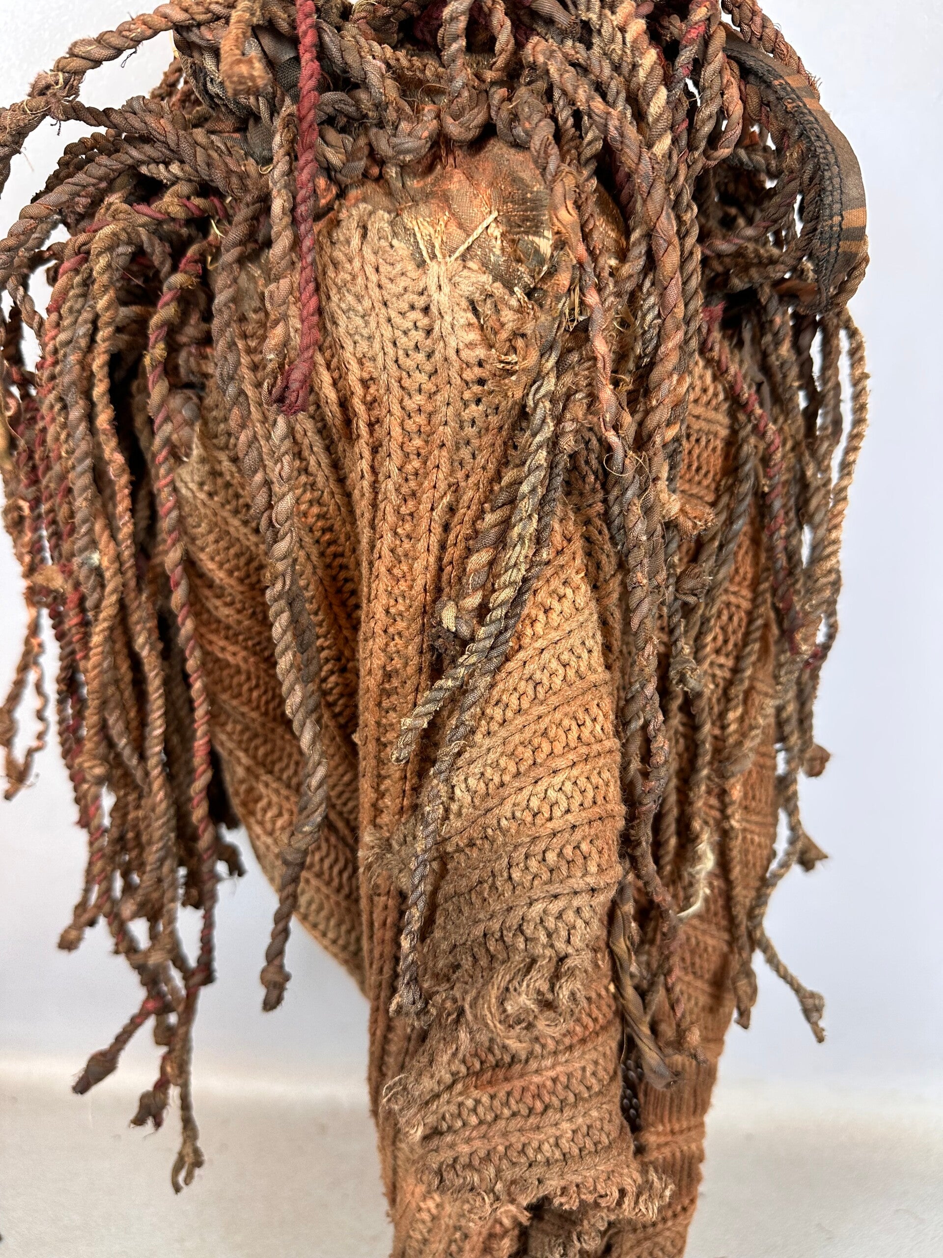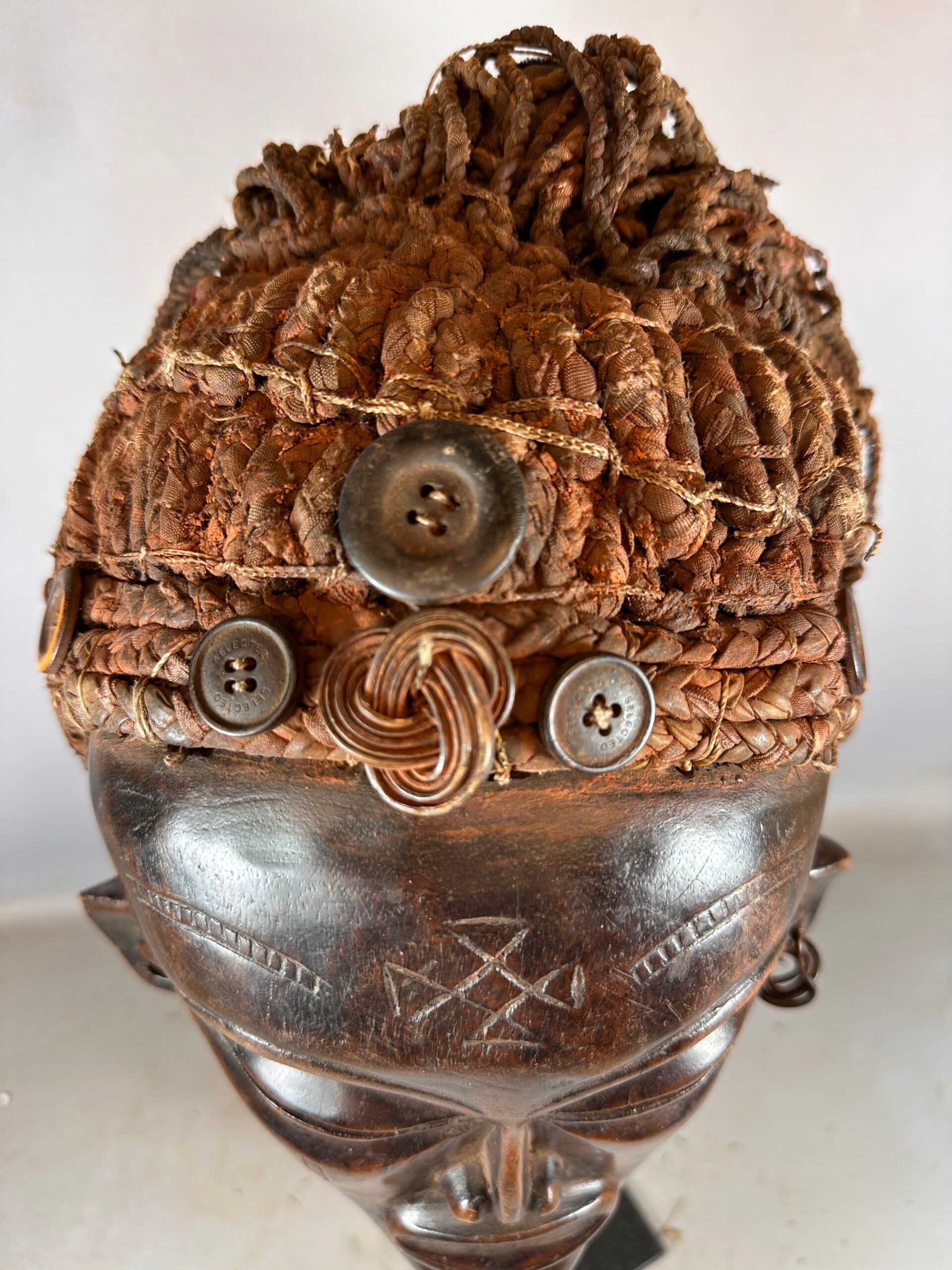 This mask comes from the Chokwe people. It belongs to the famous category known as Mwana pwo and was performed during the ceremonies of circumcision and initiation of young boys. The headdress attached to the mask is well preserved. The face shows typical Chokwe carving patterns and expression.