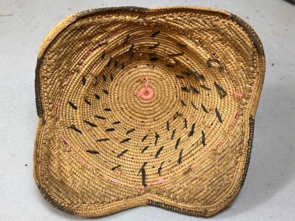 The Kuba people are renowned for their exceptional textile traditions, and the Laket Hat is a prime representation of their skillful weaving methods. Each hat is meticulously handcrafted using a variety of natural materials, such as raffia palm leaves, fibers, and grasses. The weavers gather these materials from their surrounding environment, demonstrating a deep connection with nature and sustainability.