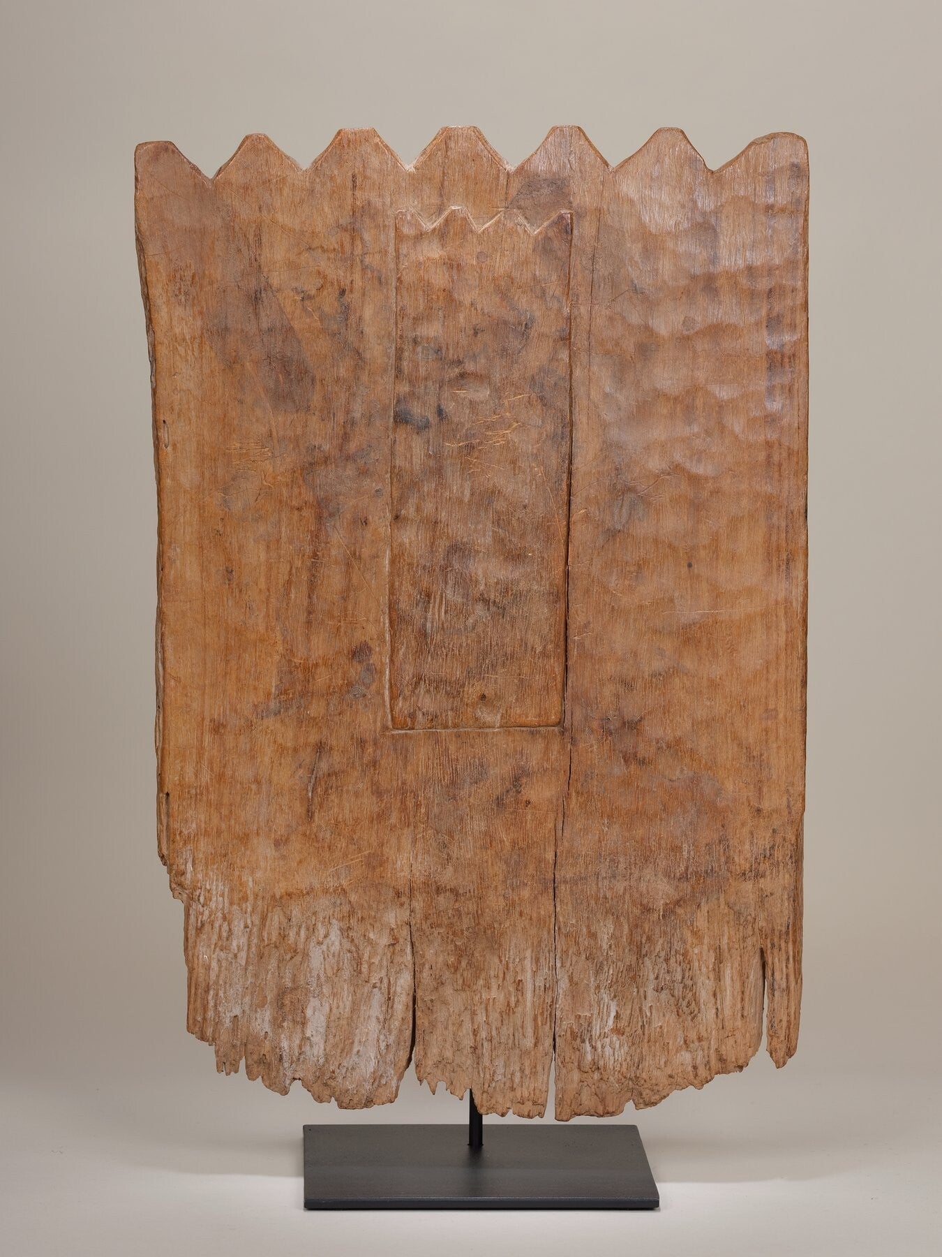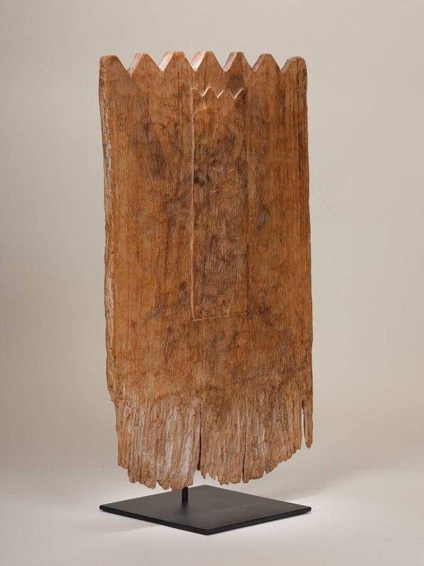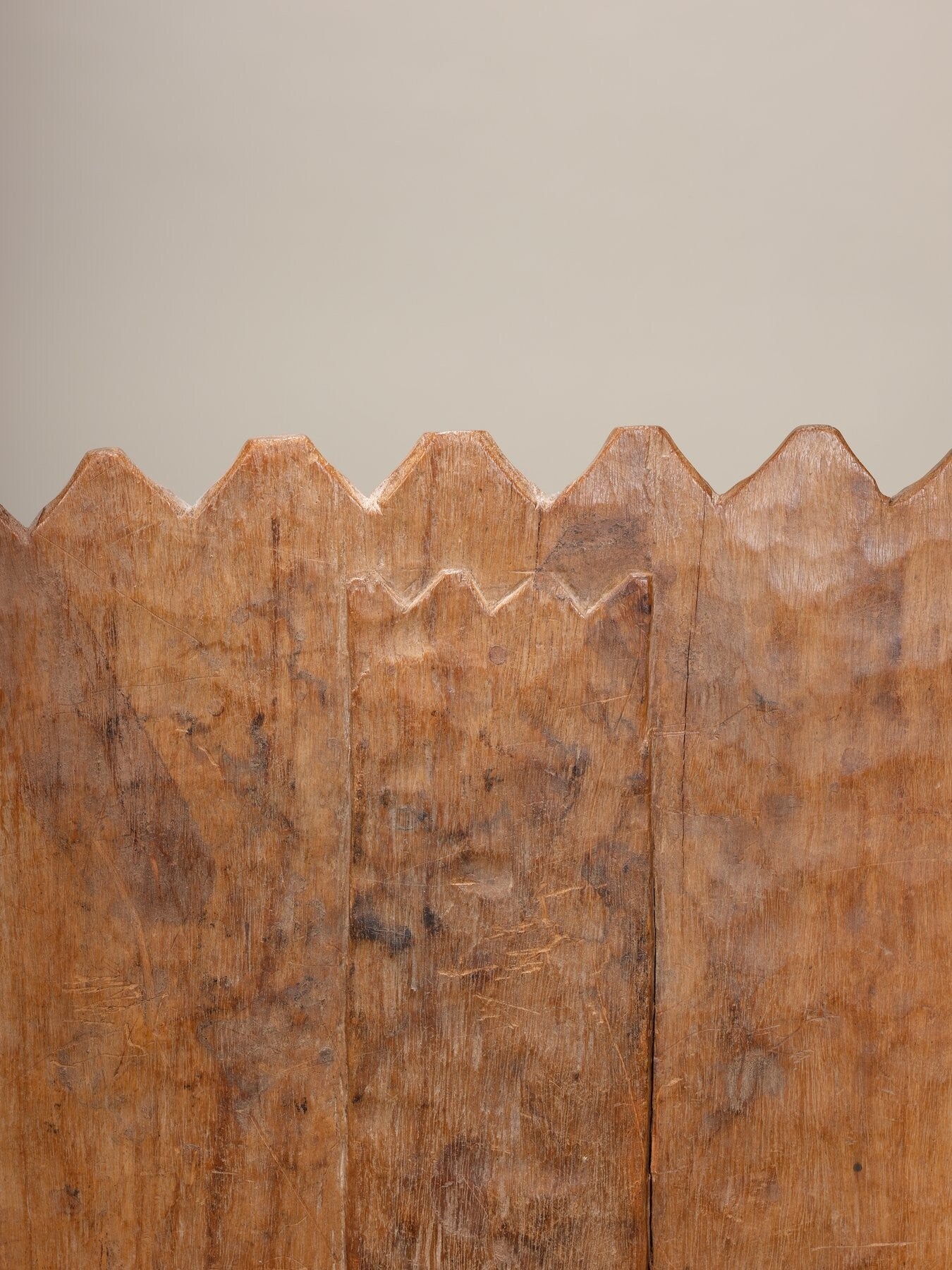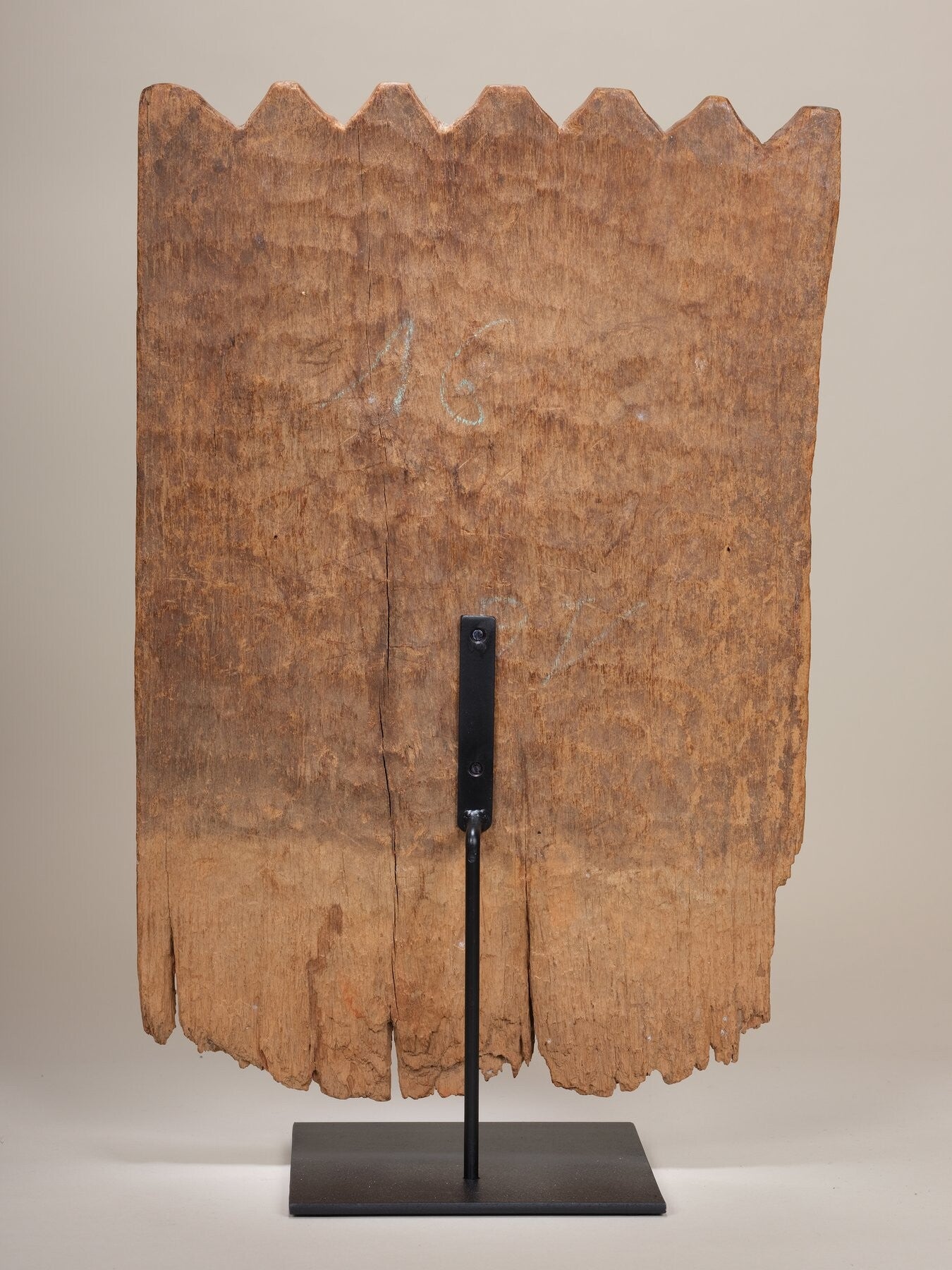 The Peulh Fulani nomads use these pieces of wood, with a crenellated top, to build their beds and allow them to sleep higher than the ground. They were planted in the ground, which explains the erosion of the lower part. They were connected by wooden rods on which a mat was rolled out.
