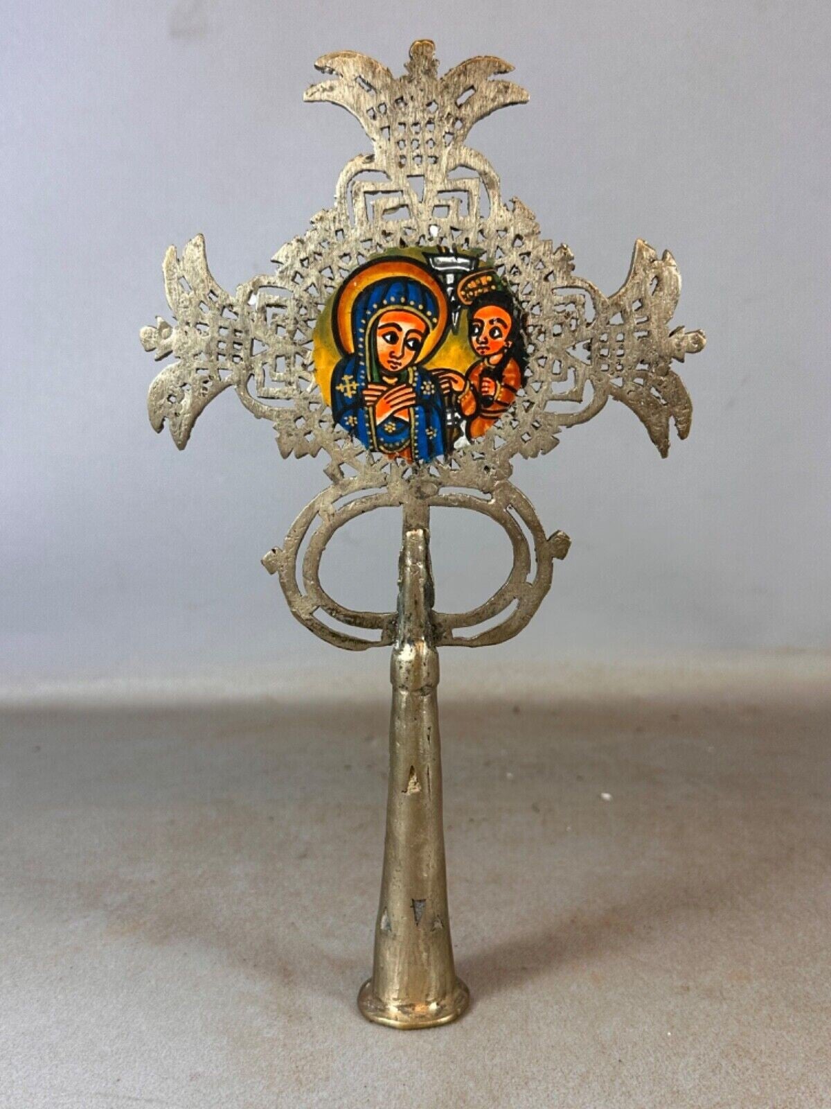 250404 - Ethiopian Coptic hand Cross with 2 handpainted icons - Ethiopia.