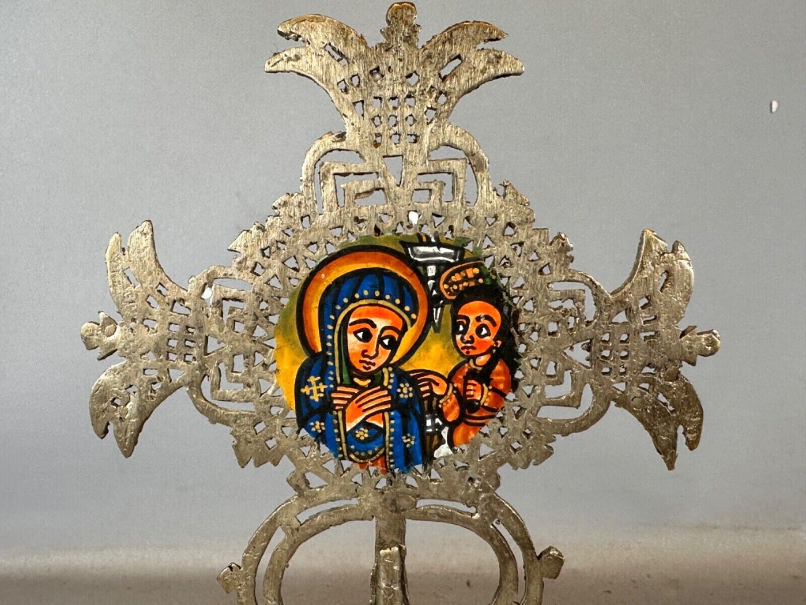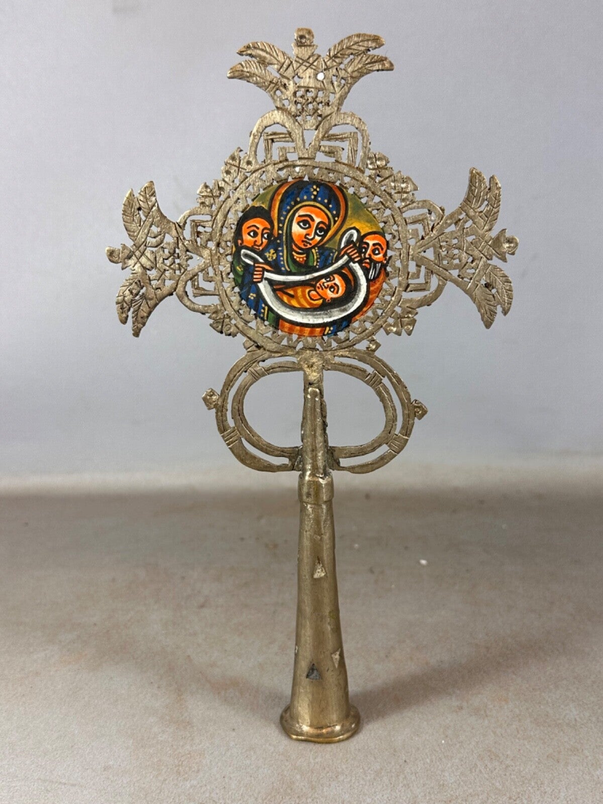 Ethiopia Coptic Hand Cross from the orthodox coptic church, with 2 handpainted icons.