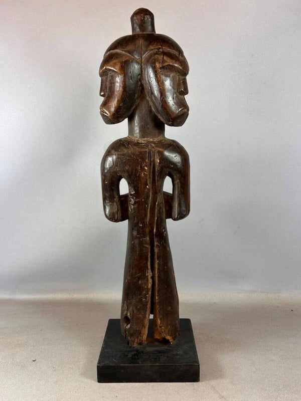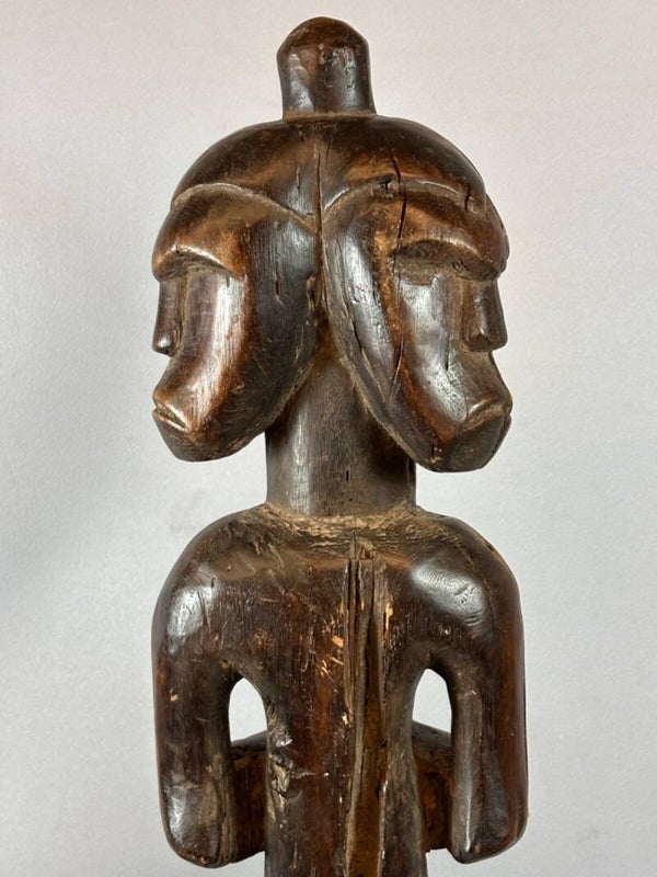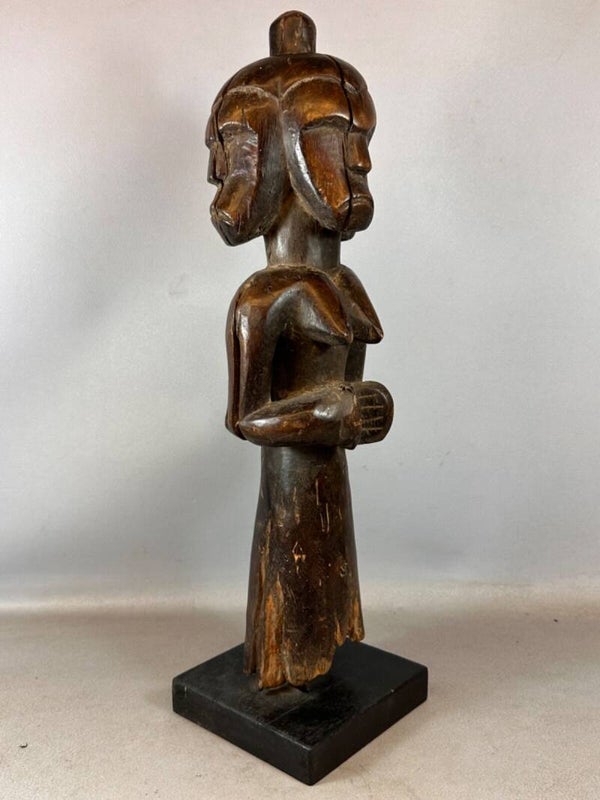 250514 - Large Old African Three-headed Fang anthropomorphic sculpture - Gabon.