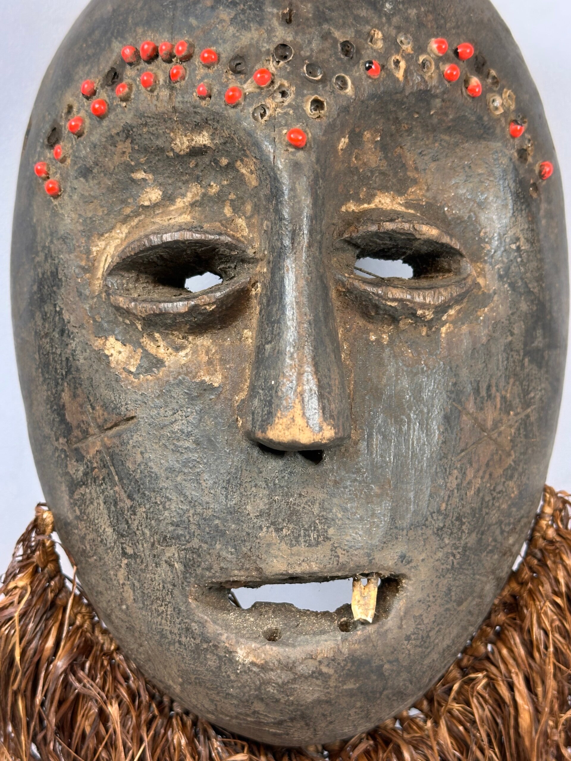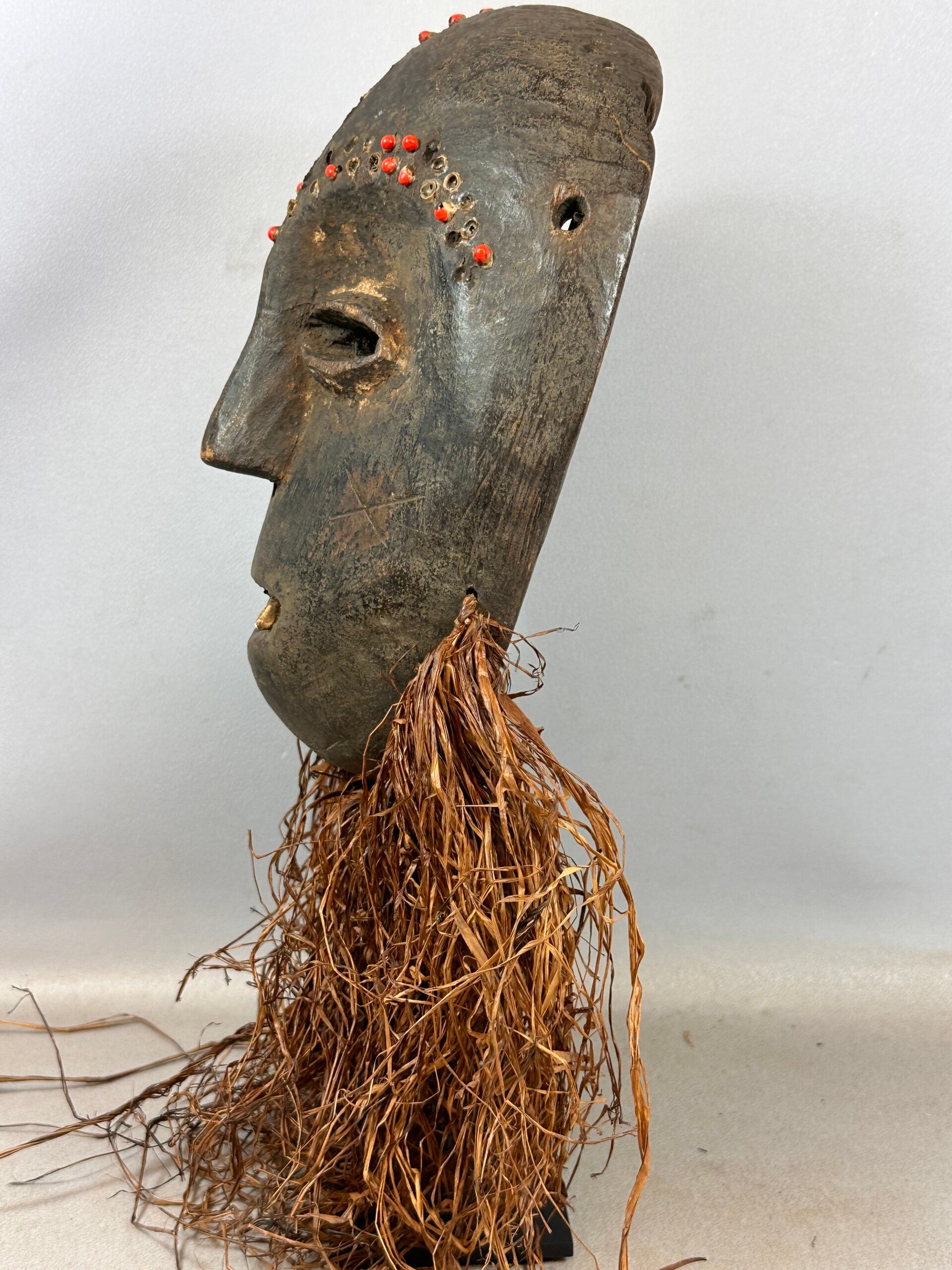 African Rare & Old Kumu mask with raffia beard, Congo.