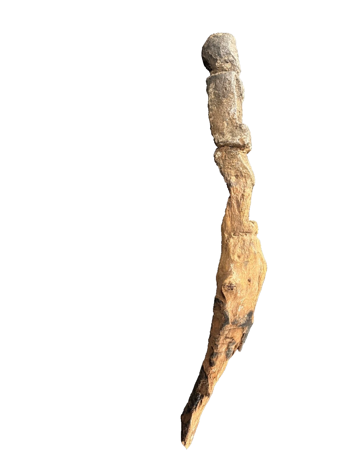 This Botchio has served as a sentinel at a family home. This Bocio pole stood at the entrance of the family home and symbolizes the god Vodun Legba, protector of the home and the family. He served as a guardian of the home. Its primary function is to make contact with the spirits of the other world in order to ward off harmful forces. From this place he can exercise his powers.