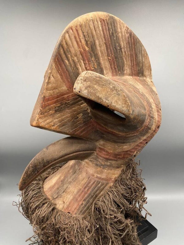 Expressive African Kifwebe bird mask from the Songye, Congo, with Raffia.