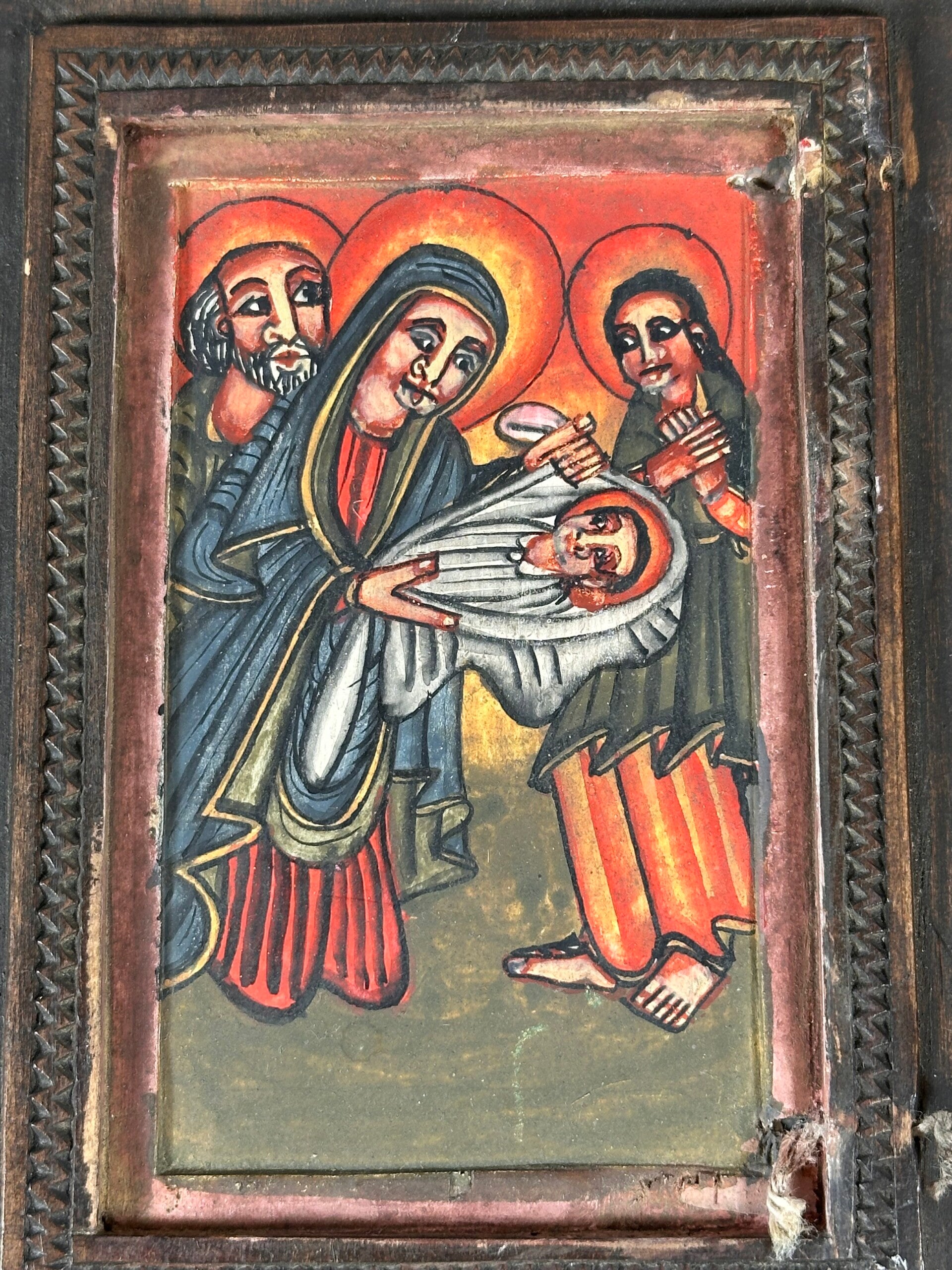 Antique & Rare Ethiopia Coptic wooden icon from the orthodox coptic Church.
