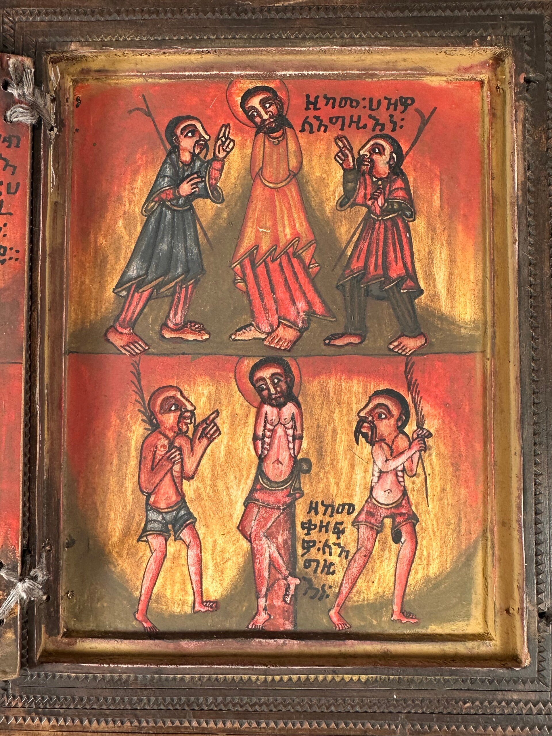 The richly hued biblical paintings of Ethiopian Icons primarily illustrate scenes from the old testament. Until the middle of the 20th century, the paintings of Christian Ethiopia remained virtually unknown outside its borders. Yet over the course of the past millennium, Ethiopian artists have produced a vast quantity of unique and creative icons, illuminated manuscripts and wall paintings in churches. By virtue of its geographical position, Ethiopian paintings belong to Africa, however, due to close contacts with the adjacent areas, their art incorporates elements of the Eastern and Western Christian artistic tradition, as well as those of Coptic and Islamic cultures and the cultures of the people of the Indian Ocean area. Ethiopian artists succeeded in embracing and transforming significant elements of these traditions, while their paintings remained a unique phenomenon deeply rooted in the African soil.