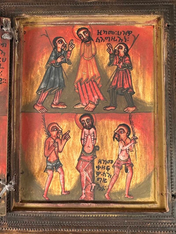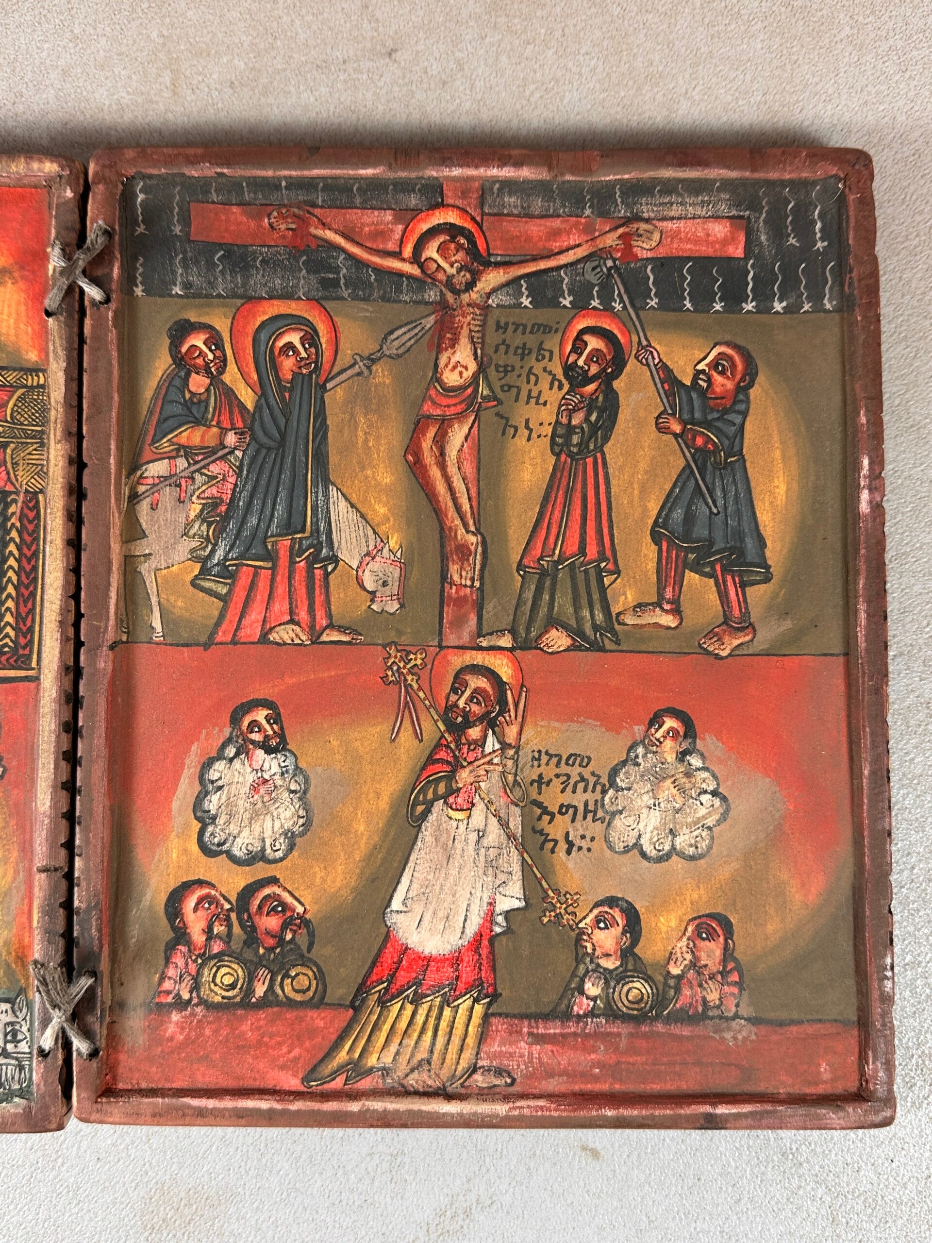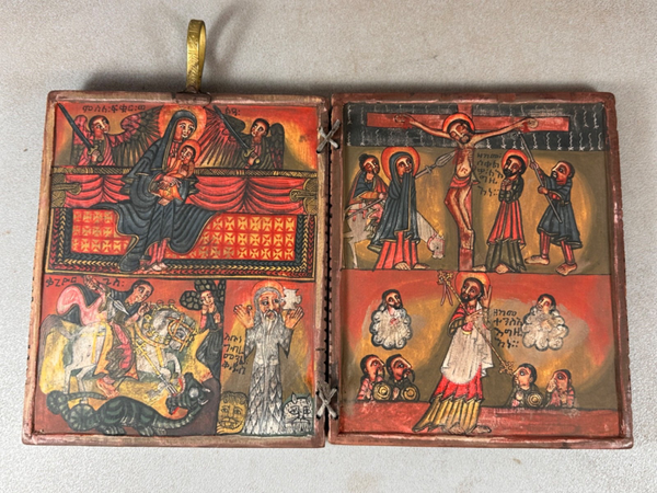 250602 - Antique Rare Ethiopian coptic wooden icon - 5 handpaintings - Ethiopia.