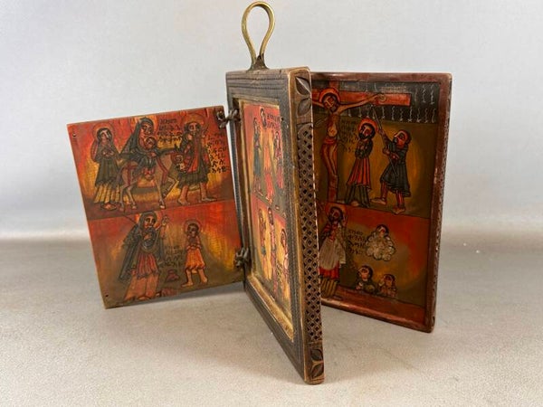 This icon comes from the Coptic Church and is handpainted end 19th century with 5 handpainted icons.