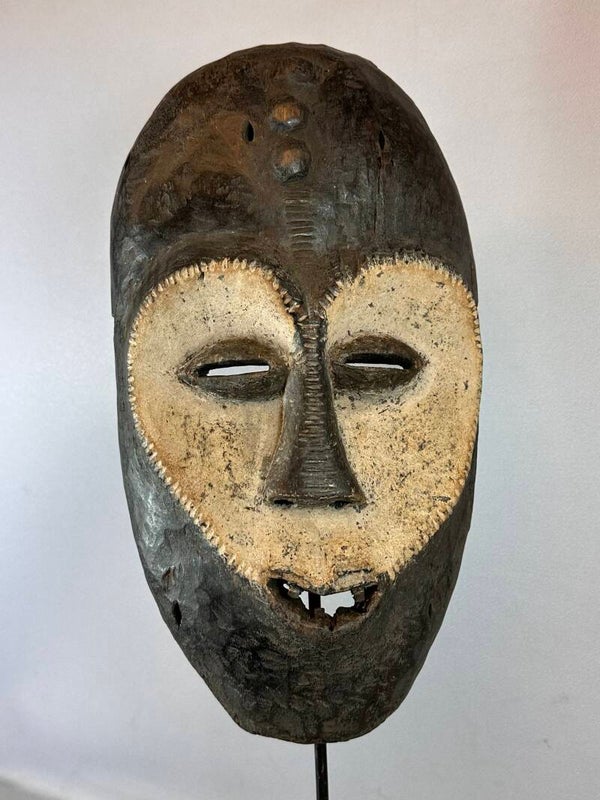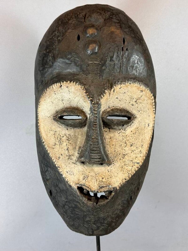 The masks are usually oval in shape, resembling a monkey, as in this mask.