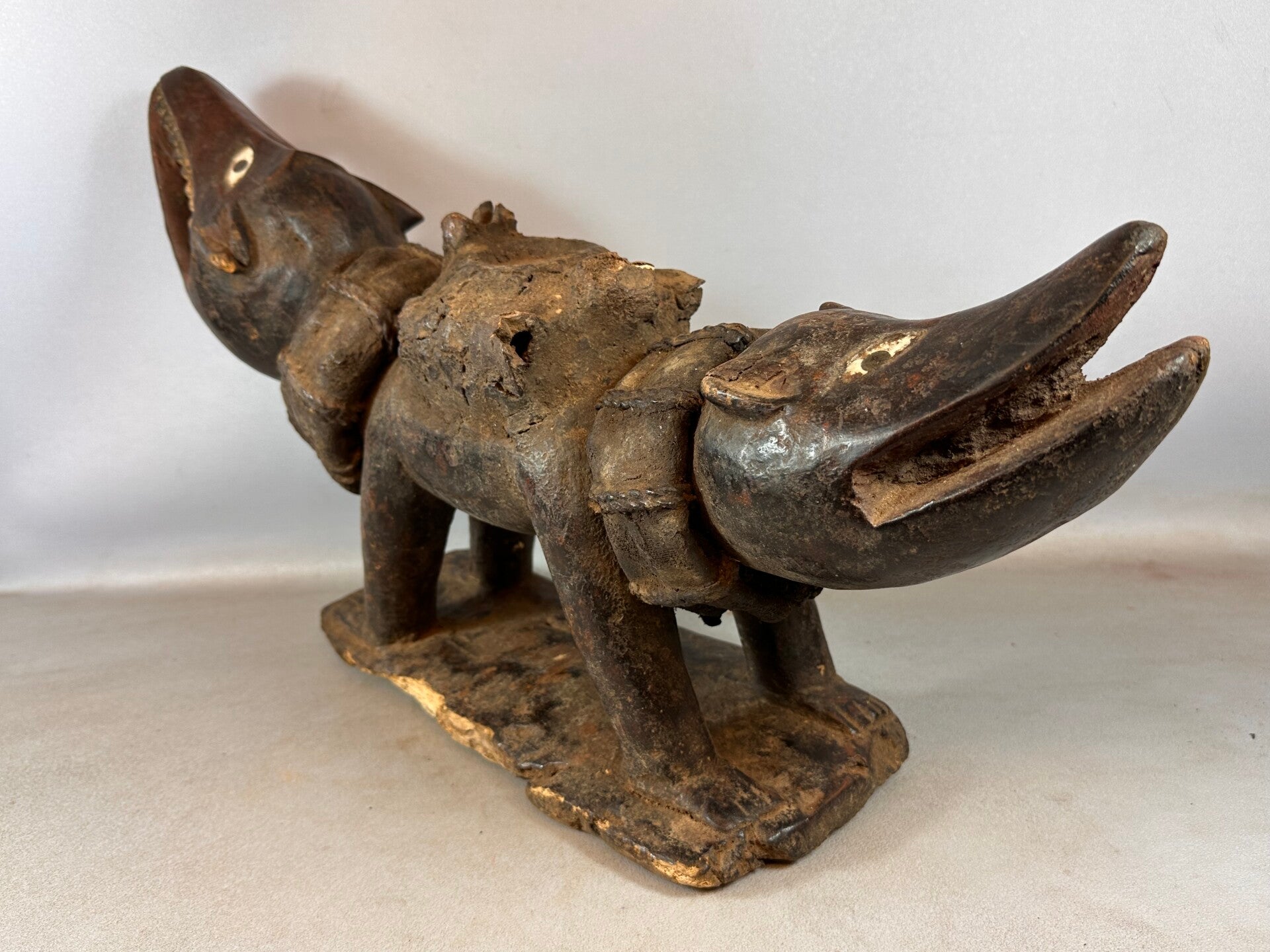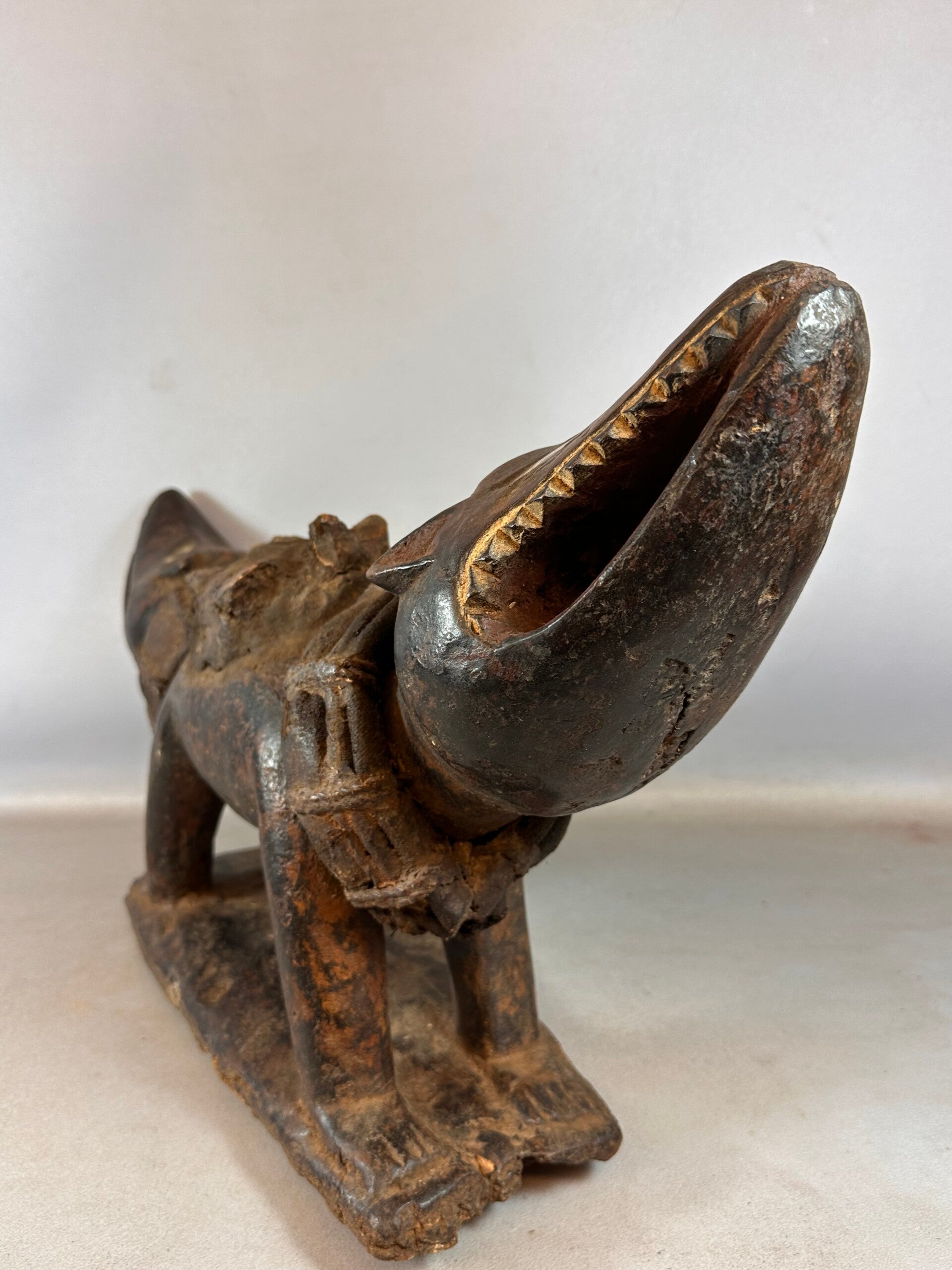 LARGE and extremely rare Antique African Bakongo Fetisch Nkondi Dog statue from Congo.