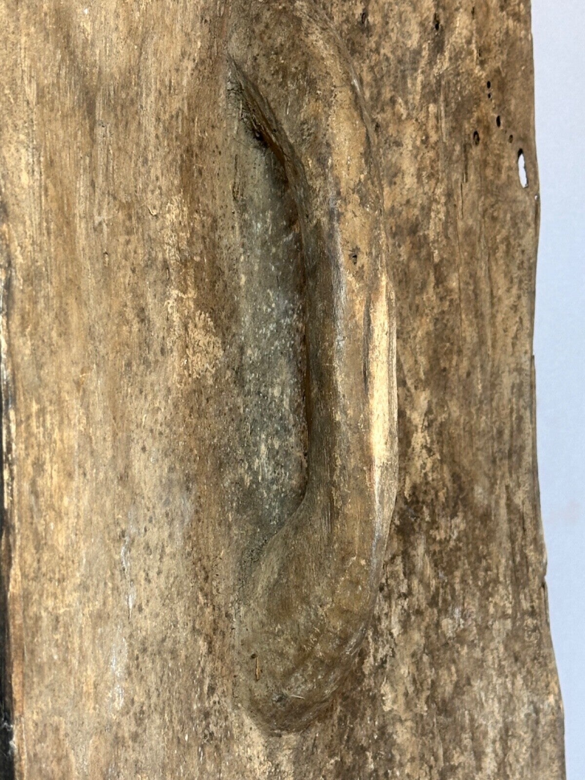 Some artwork can only be seen, handled or owned by the highest grades of the society. The objects are typically small and simple in form, and have a striking patina that derives from being handled or worn on the body. Iv. objects usually have russet or yellow patinas. The masks are fairly standardized, although the most important masks with special ritual use or symbolic meaning may have distinctive design. A typical mask will have a concave heart-shaped face. The forehead protrudes slightly, the nose is narrow, eyes are slits and the mouth is slightly open. Every time a mask is used it is rubbed with white clay, over time acquiring a white patina.