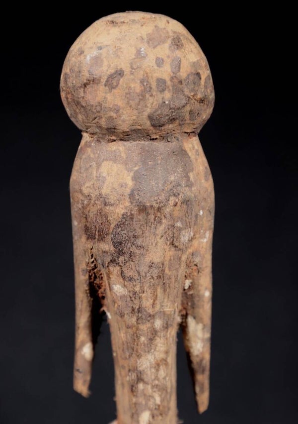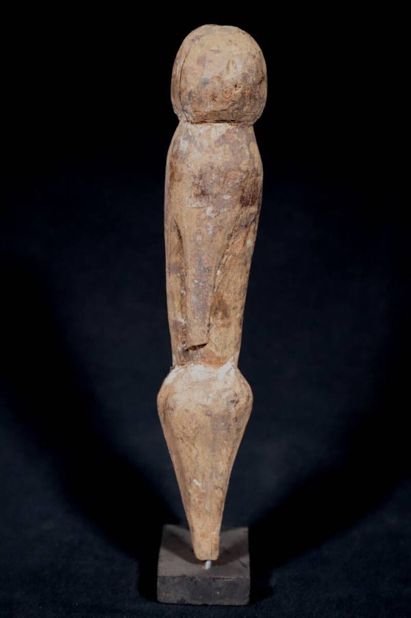 The Moba people, who live in the north of Togo on the border of Burkina Faso and Ghana, are known for their very abstract, human figures. A round, spherical head sits - in most cases without a neck - on an extremely simple, long, sexless body.