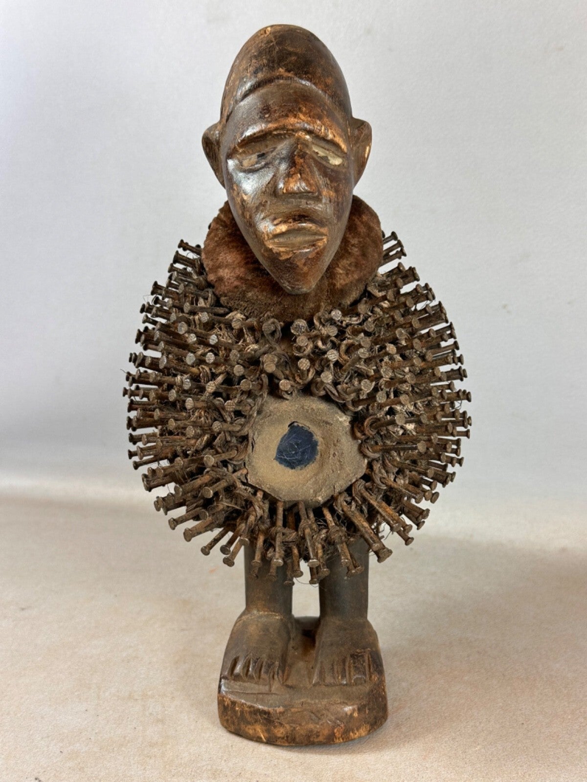 Expressive African nail Nkondi statue with Glass eyes from the Bakongo, Congo.