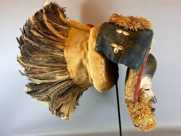 This type of mask belongs to the Koma family whose function is to detect or eliminate any form of witchcraft: the Koma Ba (female mask) attracts harmful beings, the Koma Su (male mask) destroys them. The hairstyle of this mask would suggest that it is feminine. When a Koma Ba mask has a crusty patina (which is not the case here) it is because it has received offerings.