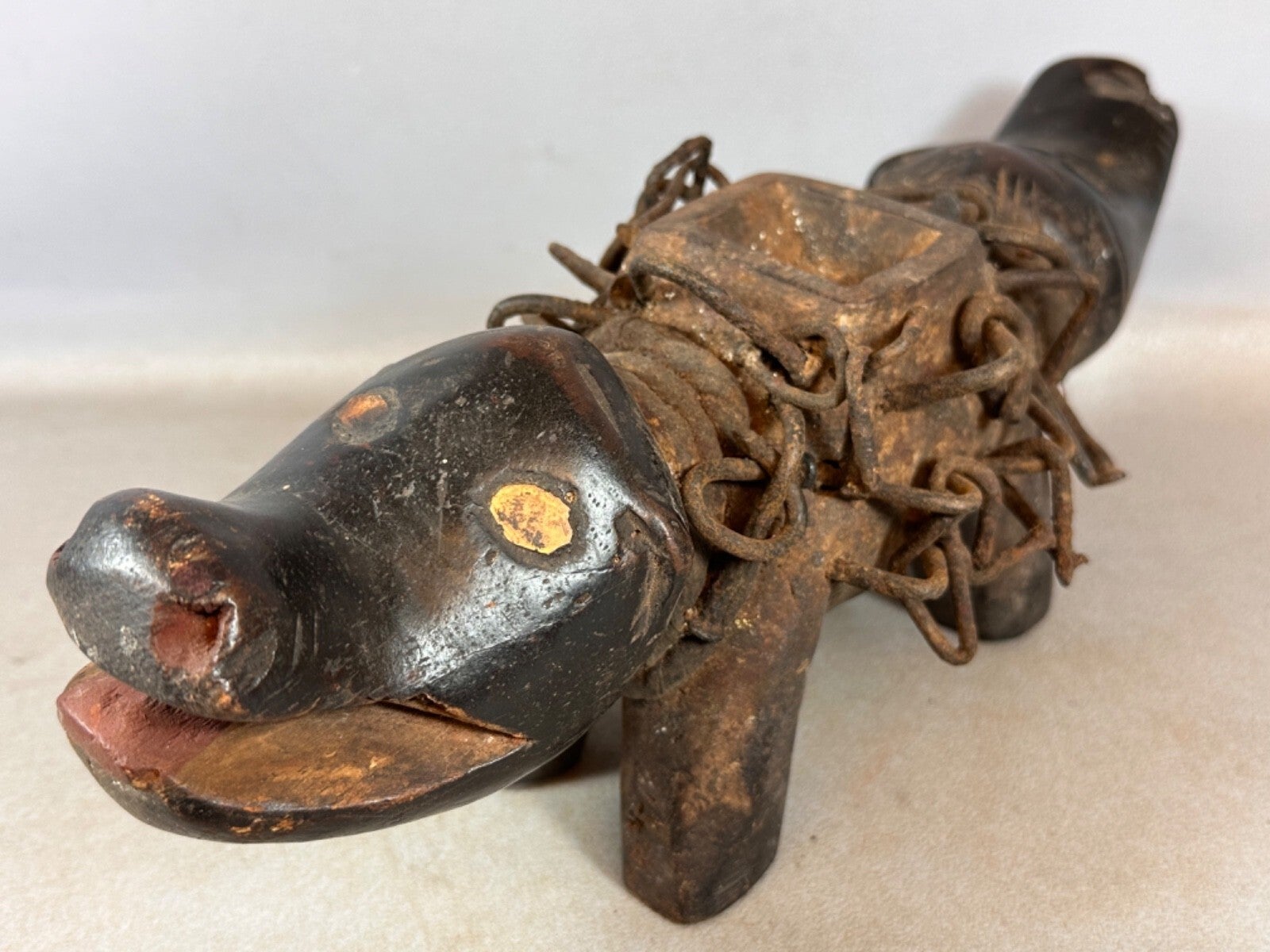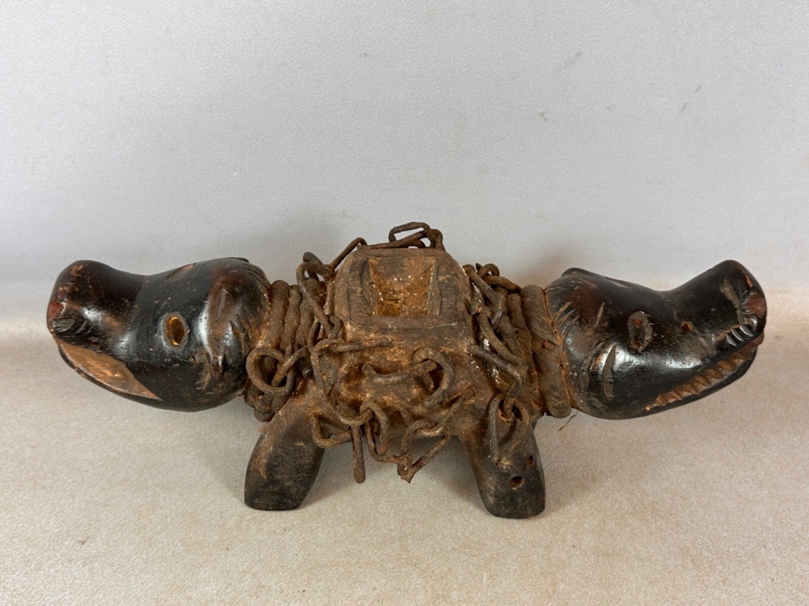 African Bakongo Fetisch Nkondi Double head Dog statue from Congo.