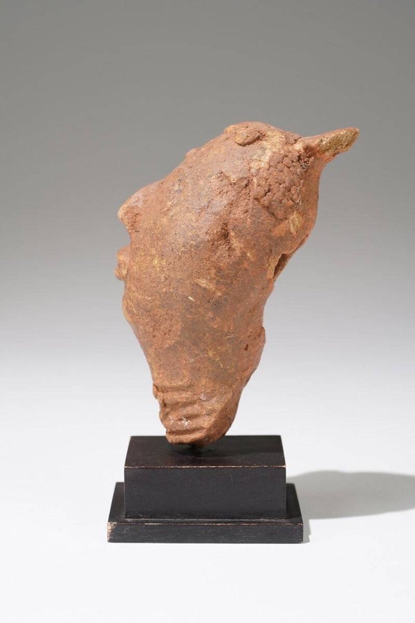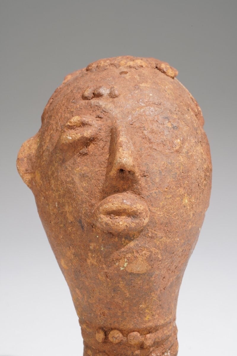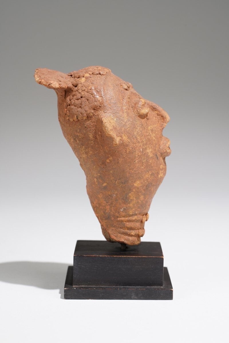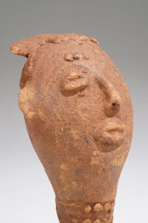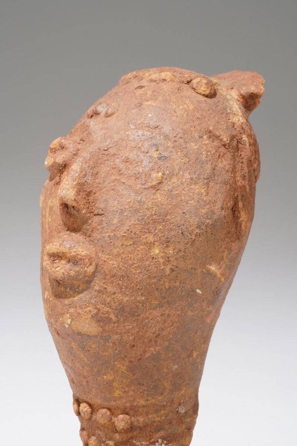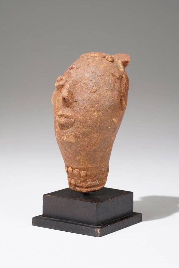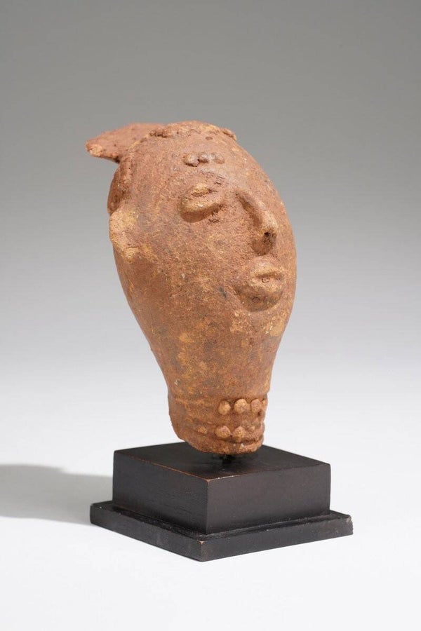 Terracotta heads of this kind were frequently deposited at sacred burial sites, particularly within ancestral groves or at the base of commemorative stools, forming part of larger funerary assemblages. The act of sculpting and dedicating these portraits was often integrated into libation rituals and offerings, intended to maintain the spiritual continuity between the living and the dead. Scholars have argued that such heads do not merely depict physical likenesses but are imbued with symbolic markers that convey the social and spiritual essence of the individual commemorated¹.