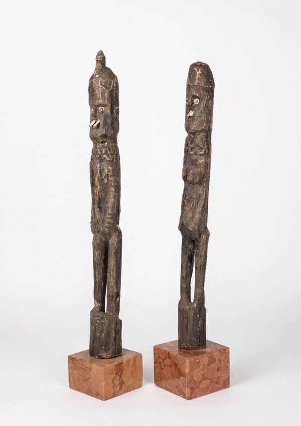 250955 - Couple Rare African Konso Waga Grave statues - Ethiopia.