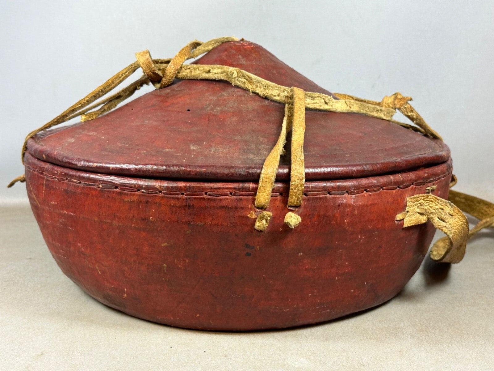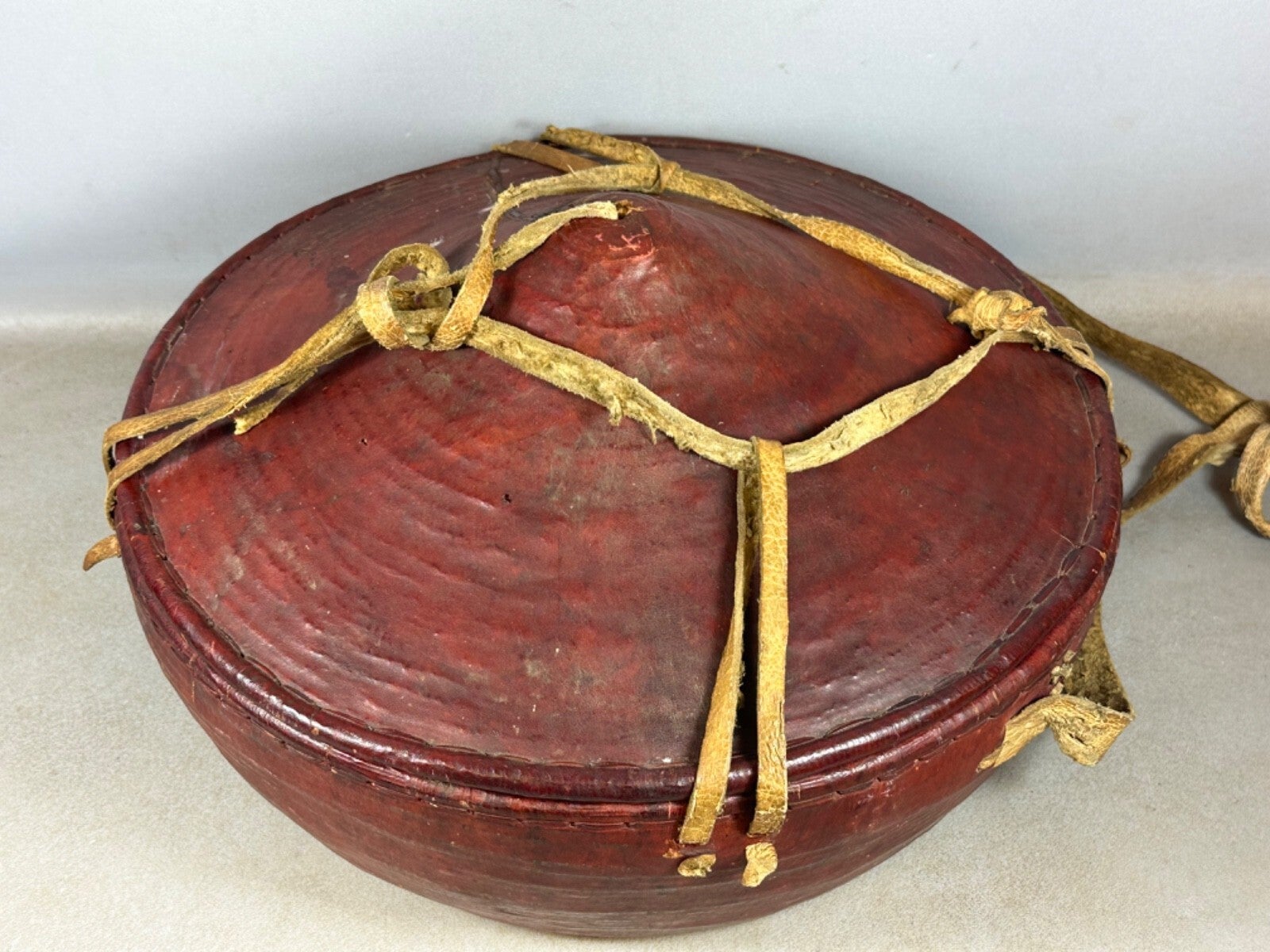 OLD Traditional Red Ethiopian injerra basket from leather.