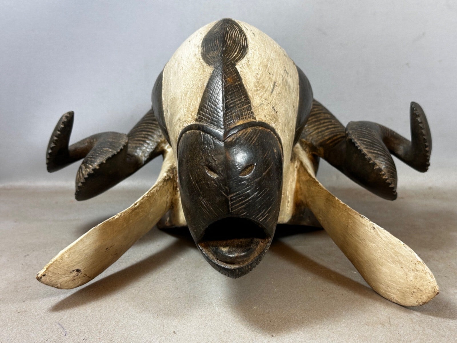The Baule people of Cote d'Ivoire are renowned for their artistry, notably their serene human face carvings and prized zoomorphic creations like the ram masks, revealing their skill and aesthetic brilliance. Gbagba performances entertain while offering social commentary, accompanied by horned masks representing hunted wild animals. Carved from a single wood piece and worn atop the head, these masks are adorned with renewed colors for each performance. Zoomorphic masks, such as the revered ram mask, symbolize bush or agricultural spirits, embodying characters and qualities akin to humans during village festivals. The ram mask, with its powerful spiral horns, signifies masculine strength and vigor. The Baule, part of the Akan peoples, migrated from Ghana in the 18th century, escaping Asante dominance, led by their queen Aura Poku, who sacrificed her son to ensure their safe exodus. Today, the Baule are revered for their political acumen and artistic talents, creating some of West Africa's most exquisite objects.