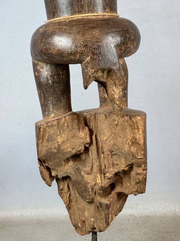 The Fang ethnic group number about 900,000 and constitute a vast village communities, established in a large zone of Atlantic equatorial Africa: consisting Cameroon, continental Equatorial Guinea and northern part of Gabon, on the right bank of the Ogowe River. Fang people used masks and statues/figures in their secret societies, the “bieri”, or ancestor sculpture. They celebrate this figure when a new crop was planted or before fishing or going hunting. The Fang bieri has the proportion of a new born, this emphasizing the groups’ continuity with its ancestor and with (three faces); the three classes of society: the “not-yet-born”, the living and the dead. This stunning fine figure shown here was also used for the initiation of young males into their secret societies as members.