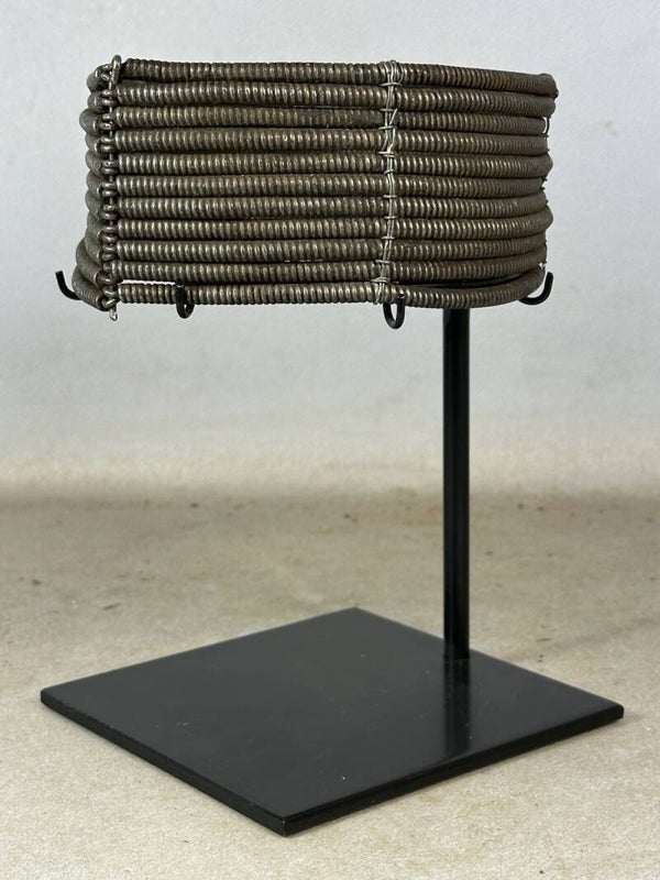 251215 - Old Rare African Turkana Coil Chocker - including stand - Kenia.