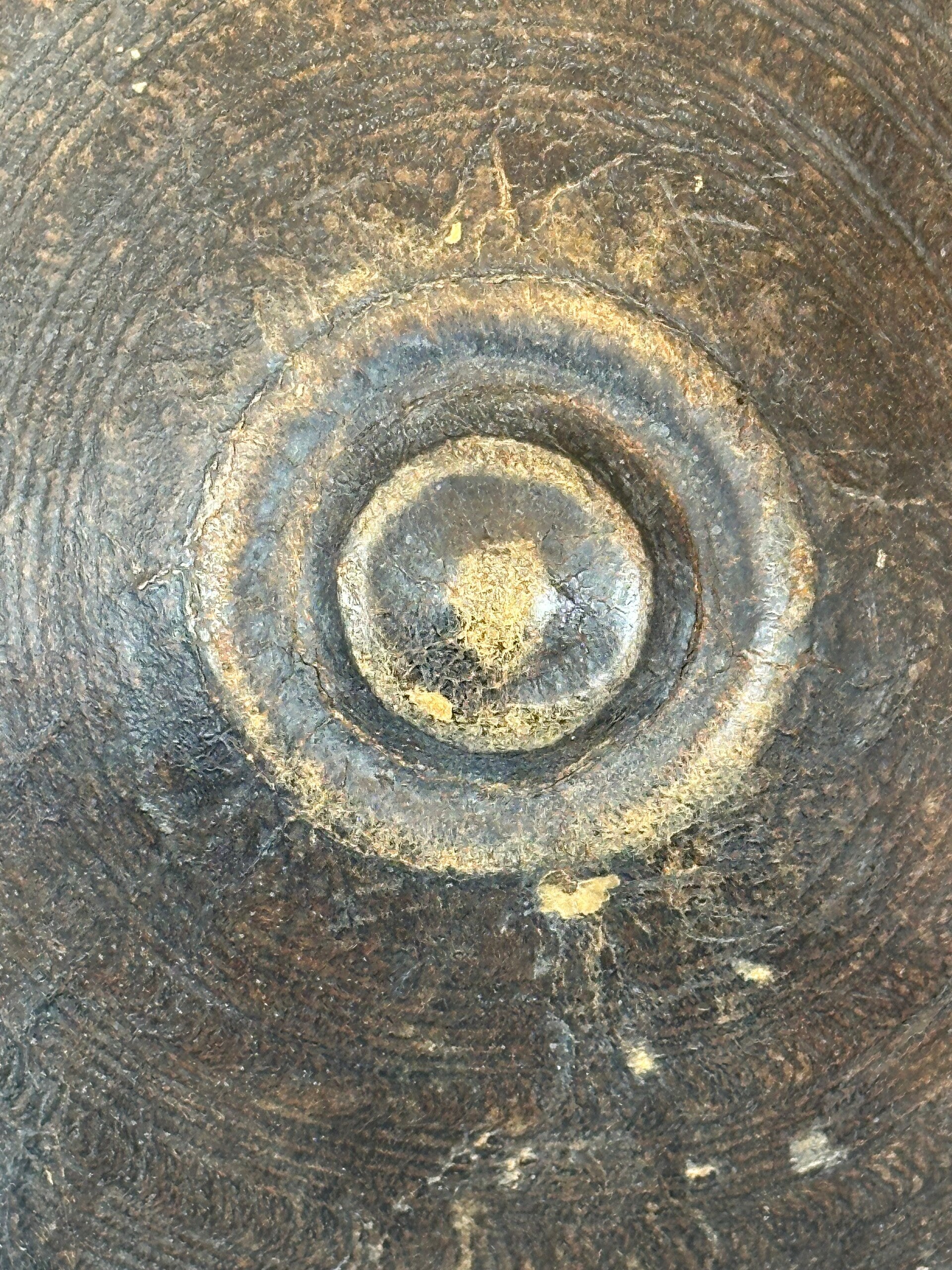 Leather is preferable for the hide is strong and resistant. The visual effect, the functionality and practical purposes of the piece dictated the form a shield should take. A good shield should offer a maximum of protection. The material used should be strength and durable. Almost all peoples of Africa made usage of the shield. In many cultures, shields like this were known as a defensive weapon, used by the warriors during combat. Shields were also displayed as emblems of status or rank and also as accessories of dance during festival or commemorative ceremonies or after a victory.