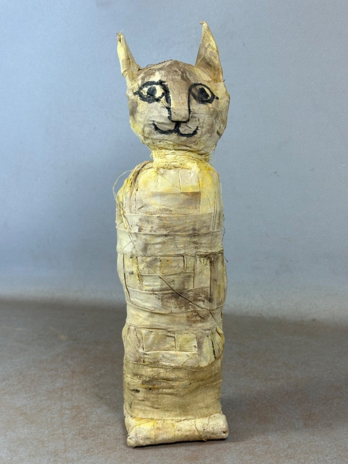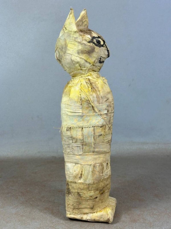 Cats, sacred animals in Egypt, were mummified in large numbers. Researchers have discovered that some of these mummies contained no animals. This one is therefore completely authentic! The body and papier-mâché are surrounded by ribbons.