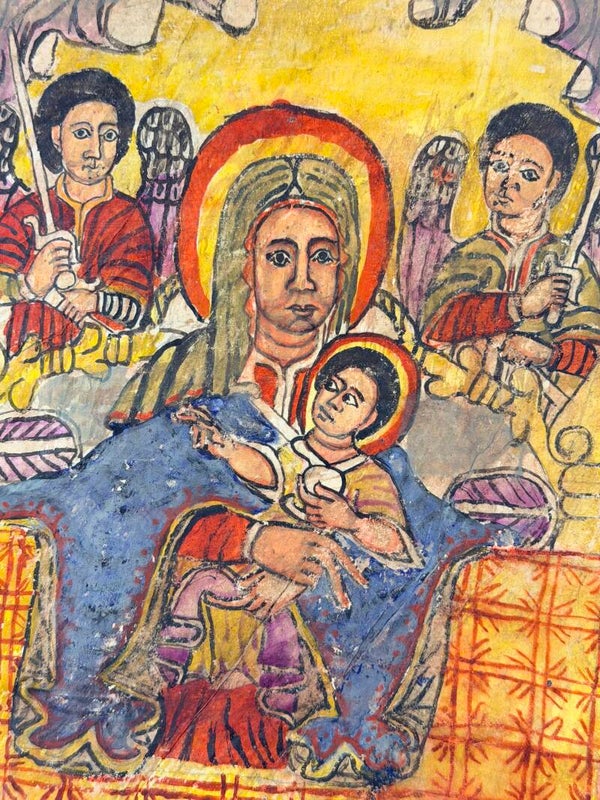 Rare old Ethiopian Coptic handpainted double bible or manuscript leaf - Ethiopia.