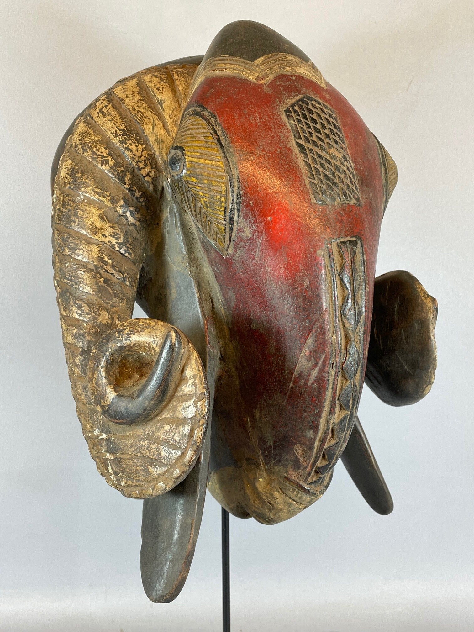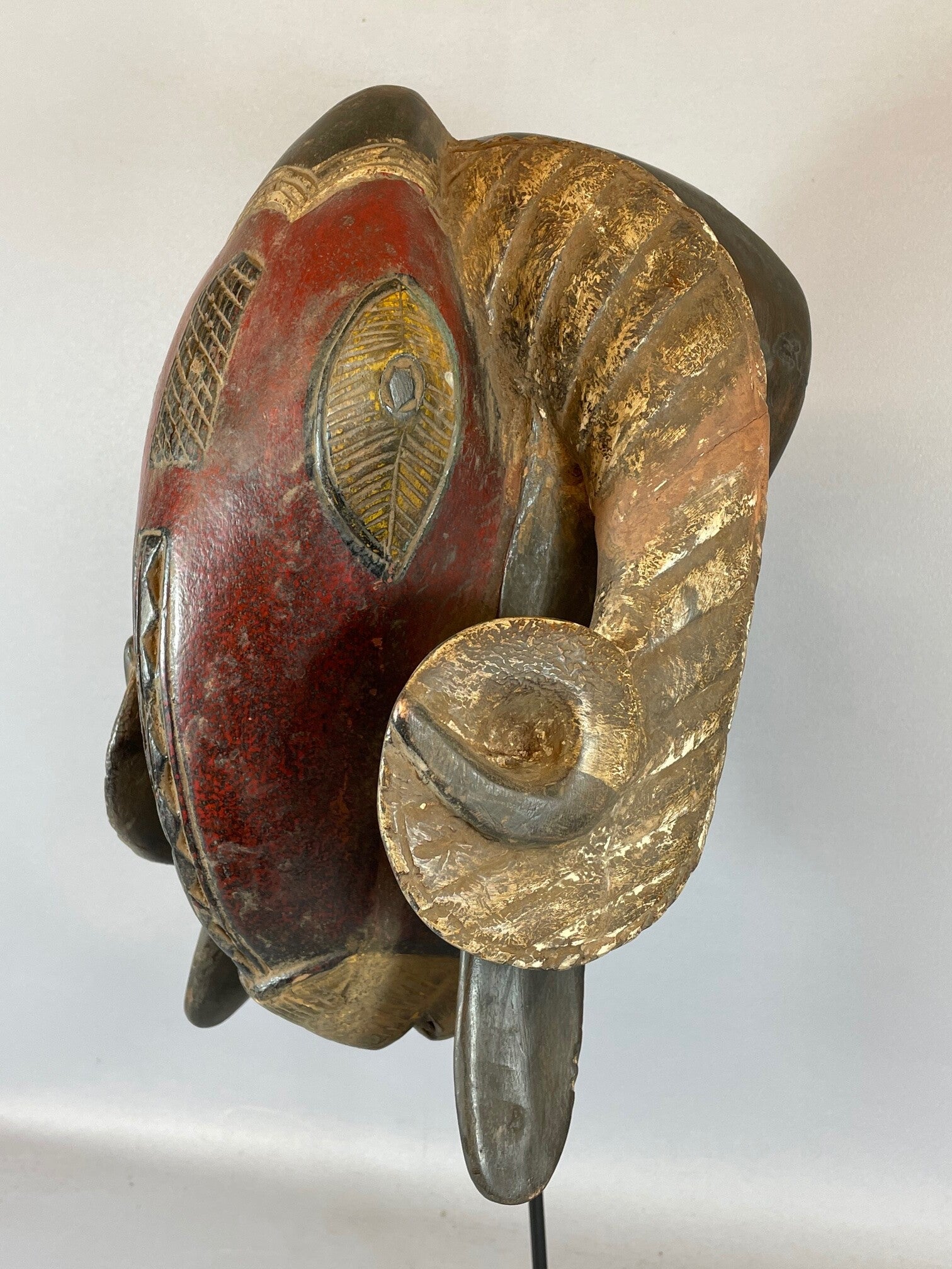 Iv. Coast: Rare and Old Tribal used African Baule Ram mask.