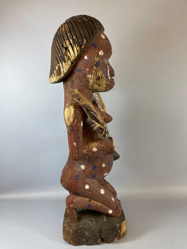 Extremely Rare Old & Tribal used African glass eyes Vili statue - Gabon.