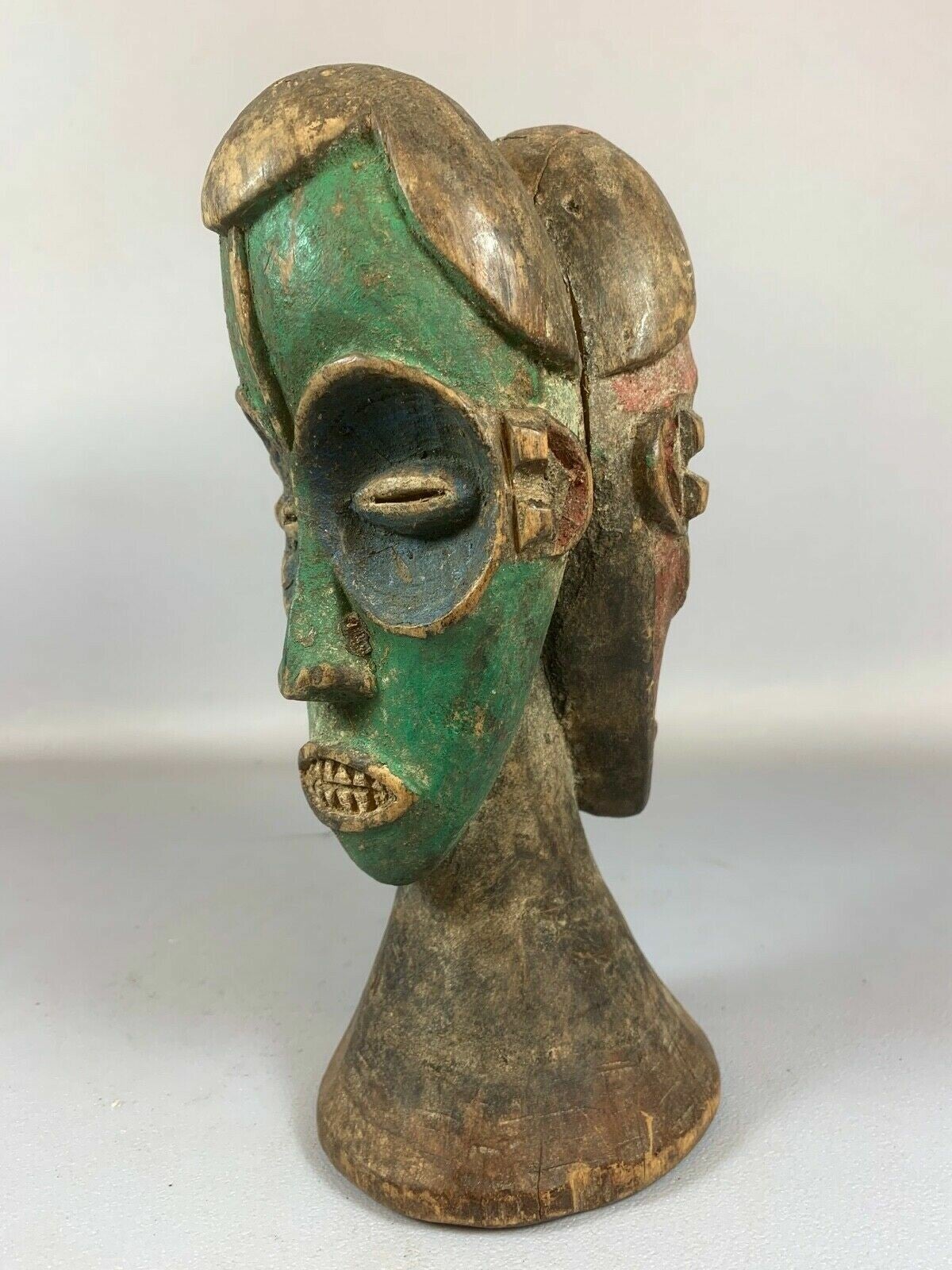 210339 - Old Tribal used Rare African 2 head statue from Eket - Nigeria.