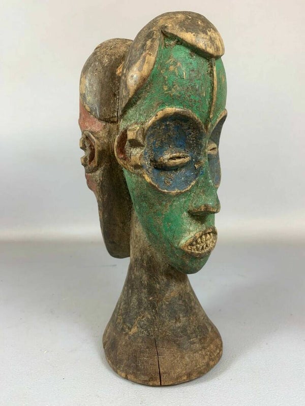 Tribal used Rare African Old 2 head statue from Eket, Nigeria.