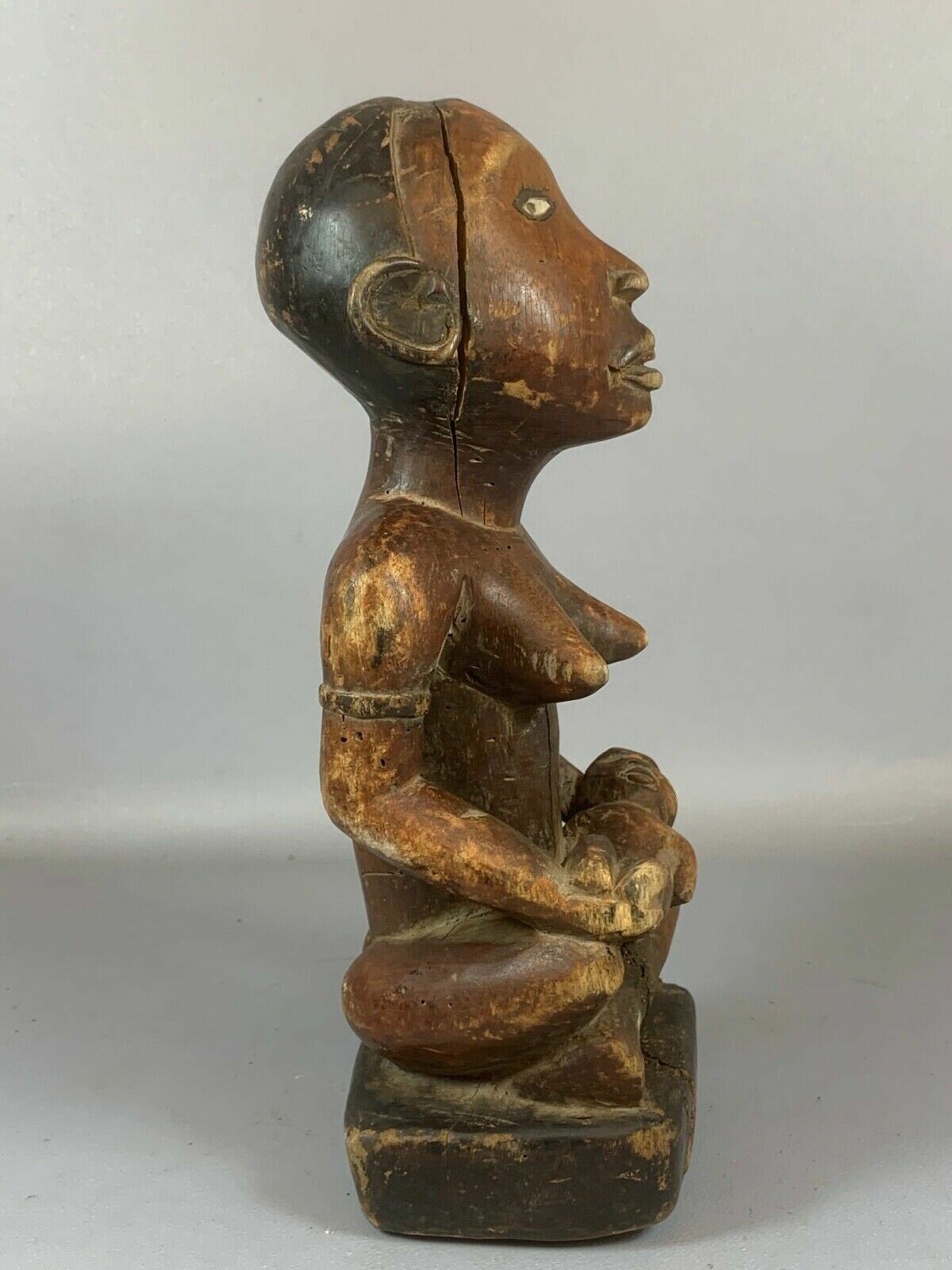 Expressive african figure from the Bakongo, Congo, with an child front.