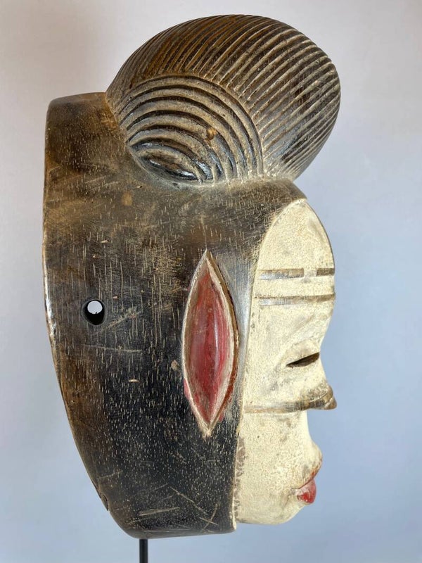 220636 - Tribal used African Punu Maiden Spirit Mask Mukudji White - Gabon.