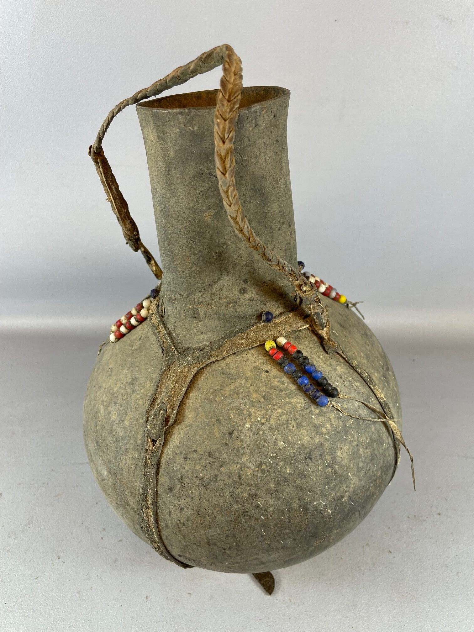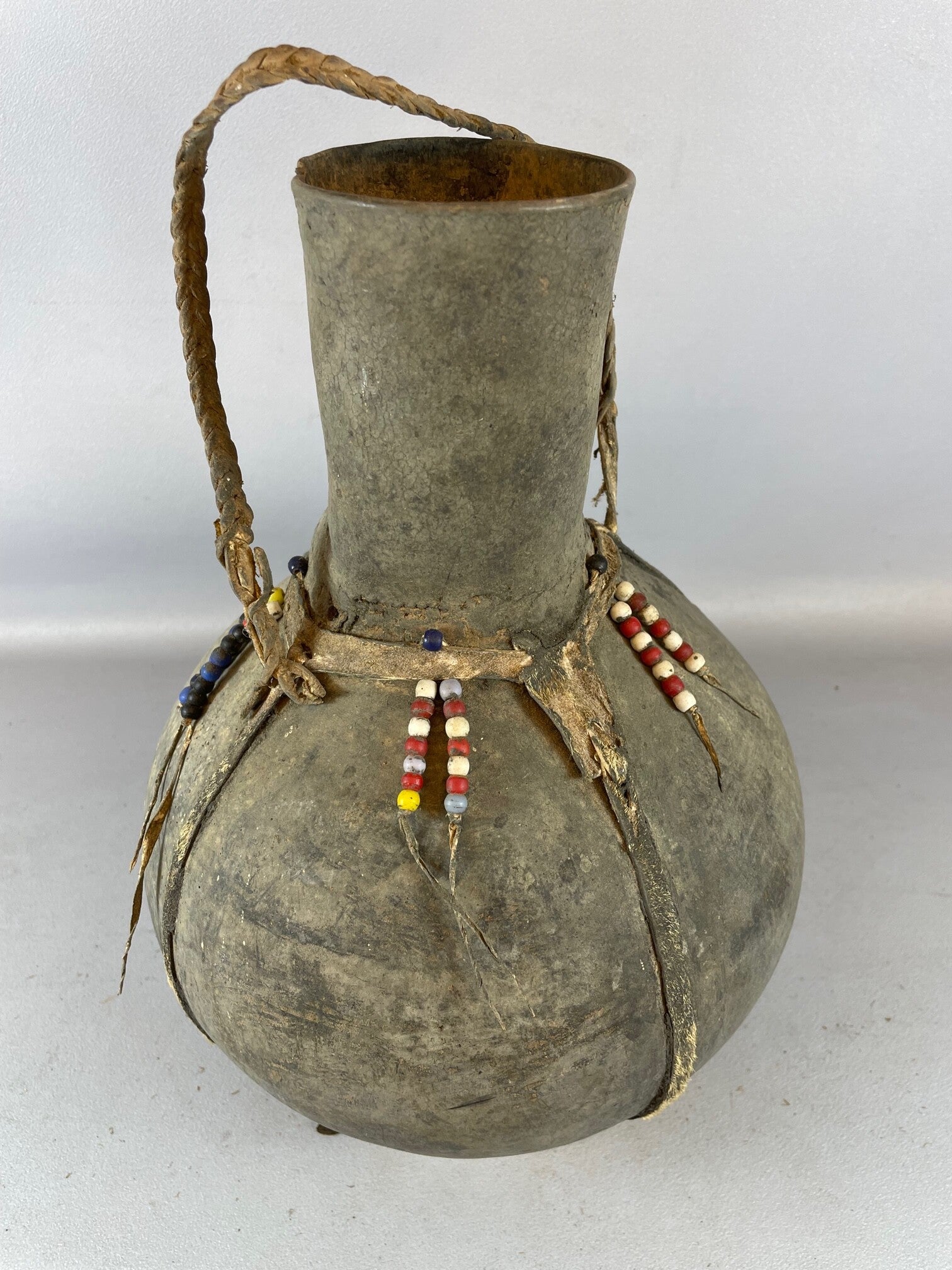 220905 - Old used Ethiopian African LEATHER Mursi jug - Ethiopia.