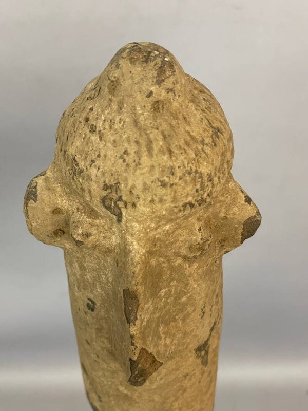 It shows wear consistent with an age of several hundred years, including cracks and chips that are a normal part of the patina. Importantly, it is an intact original piece.