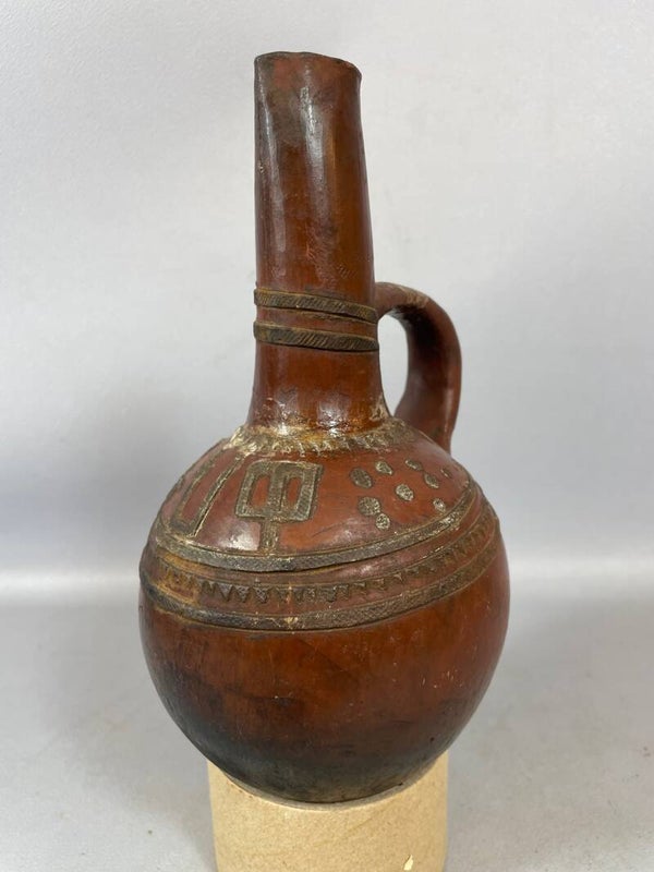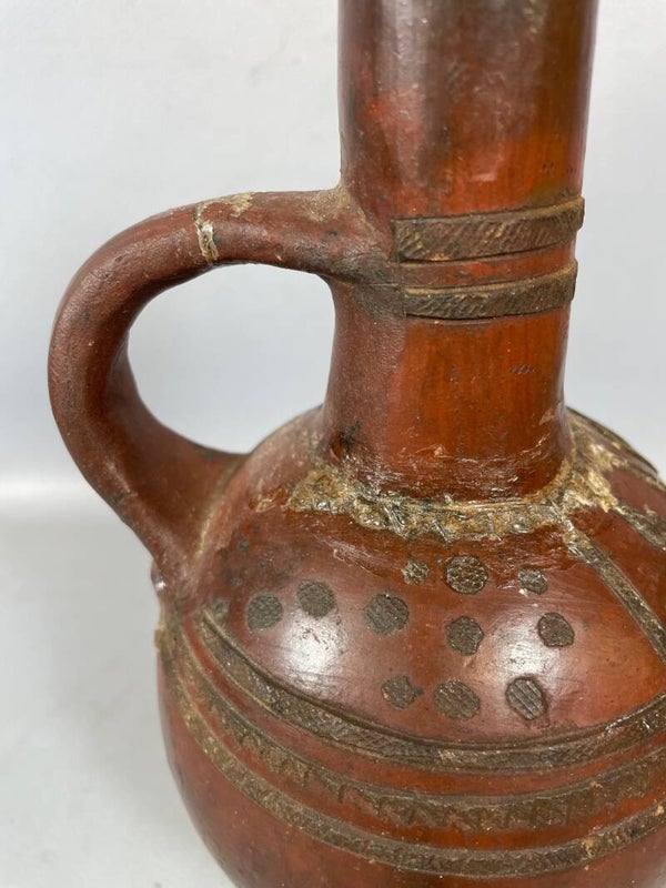 This is an very old Antique hand carved coffee pot or Jebena made from clay or Terracotta. (This Jebena can't be used to brew coffee) Jebena is a container used to brew coffee in Ethiopian traditional coffee ceremony.
