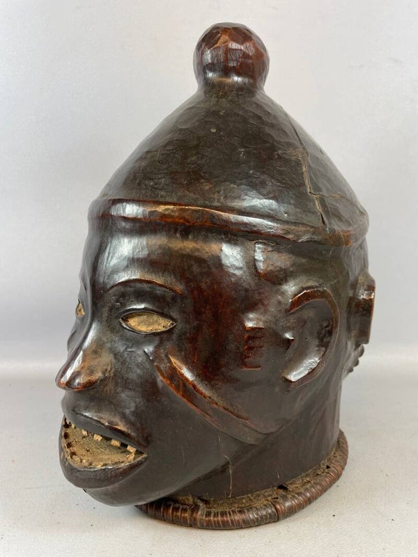 A wonderful Janus Head Crest known as Ngbe worn by members of Leopard Society among the Ejagham (also known as Ekoi) from Nigeria Nigeria.