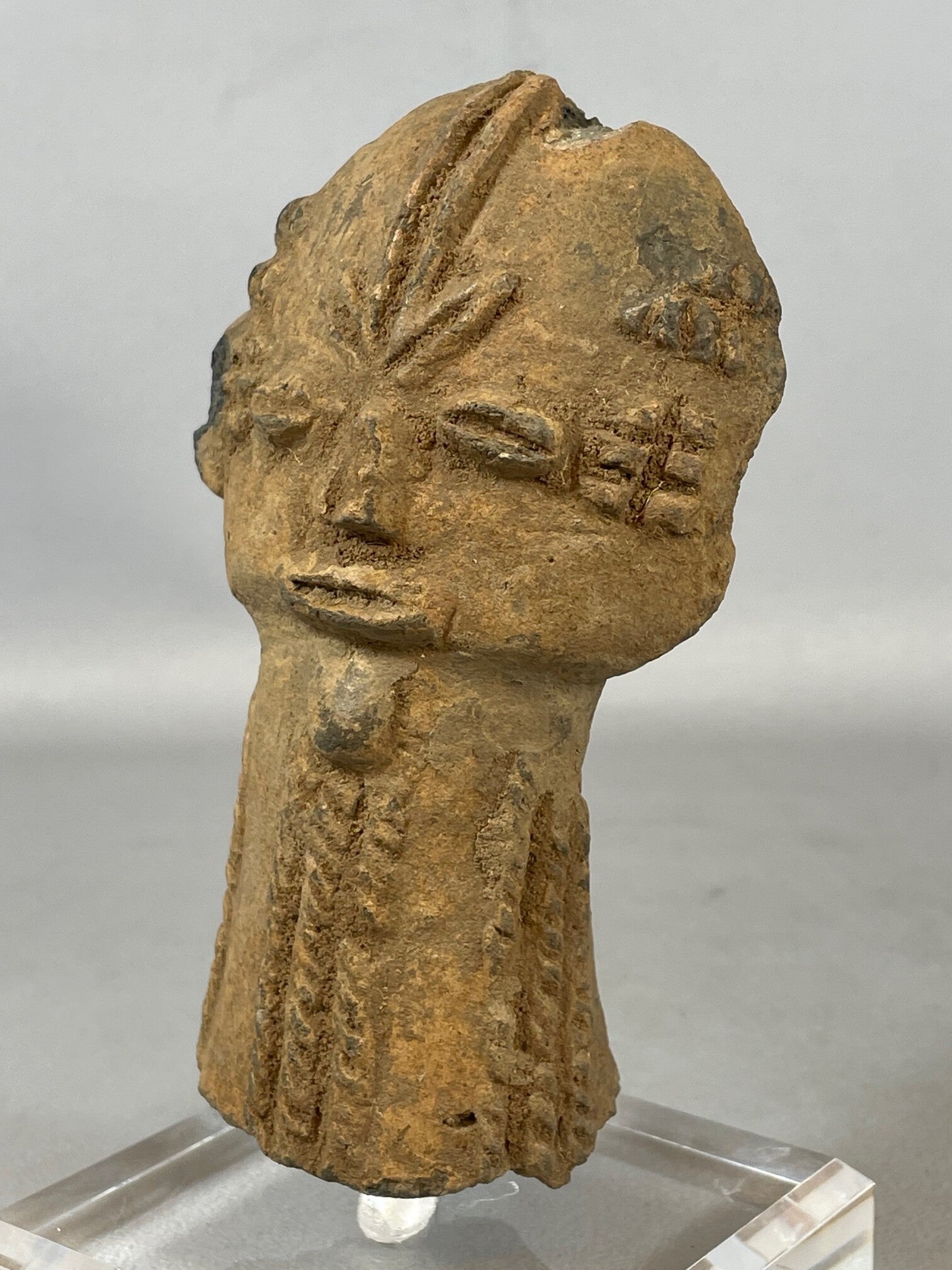 Antique Terracotta Bura Funerary vessel top head - Niger.